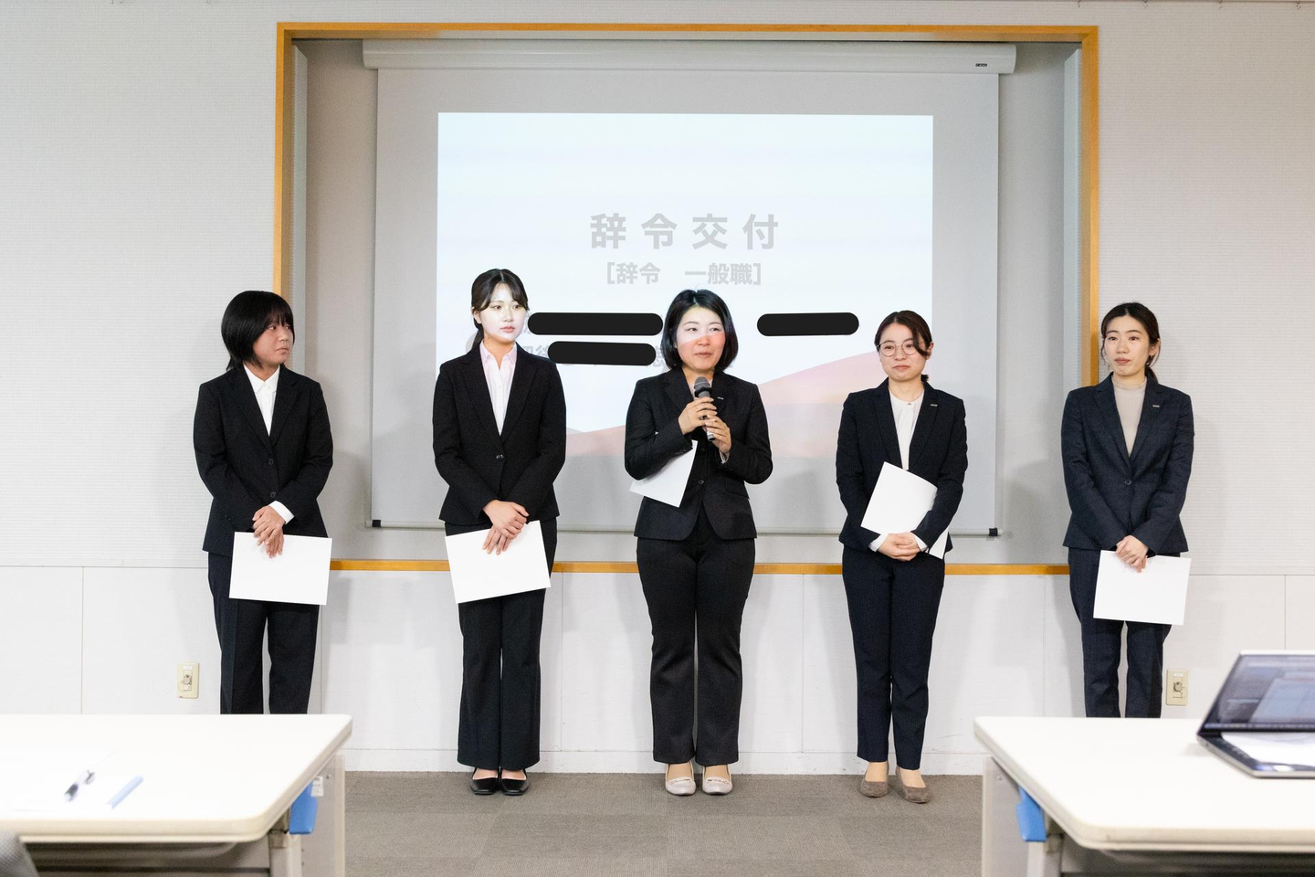 弊社では2023年度中に入社した社員も、このタイミングで一区切りということで辞令が交付されます。