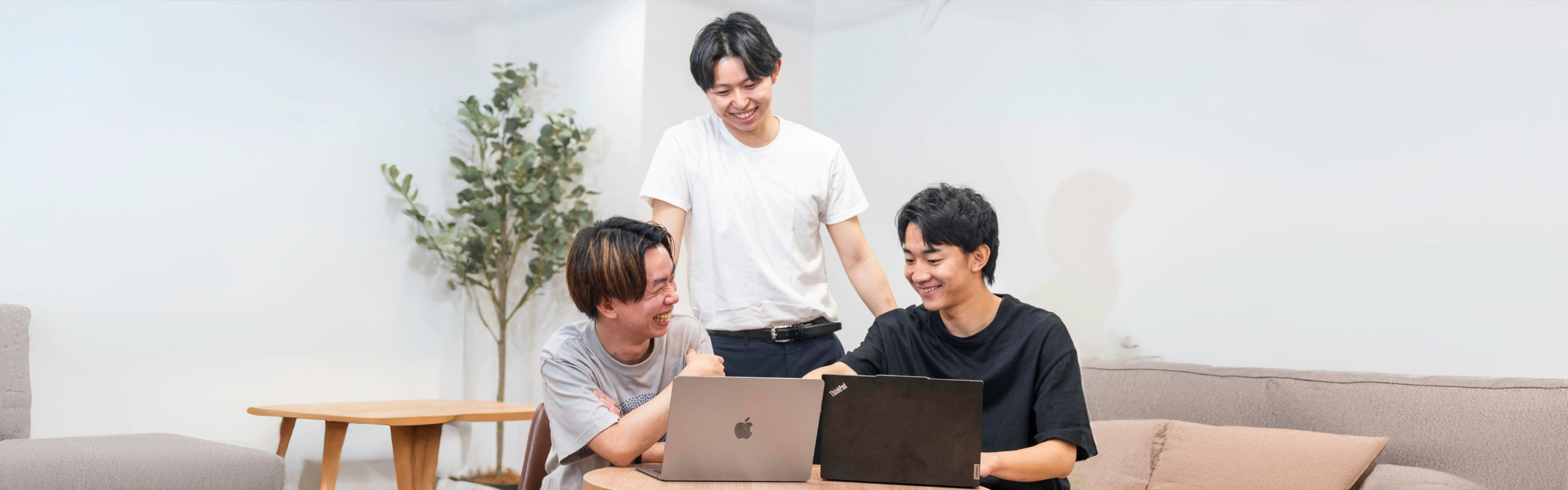 大きい組織ではないため、年齢や役職に関係なく意見する事ができ、活躍できる環境が揃っています。そのため、意思決定が早く柔軟な組織である事が強みです。フラットな組織の雰囲気づくりを実践できている企業です。slackで雑談専用のチャンネルがあり、縦横斜め、年齢問わず色んな人同士がコミュニケーションを取っているのも特徴的です。出社しているメンバーでランチに行ったり、近くのカフェで仕事をしたり、メンバー同士のコミュニケーションも充実しています。