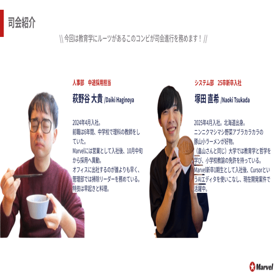 司会進行は、採用部のメンバーと25卒の新卒エンジニアによるペアが担当!