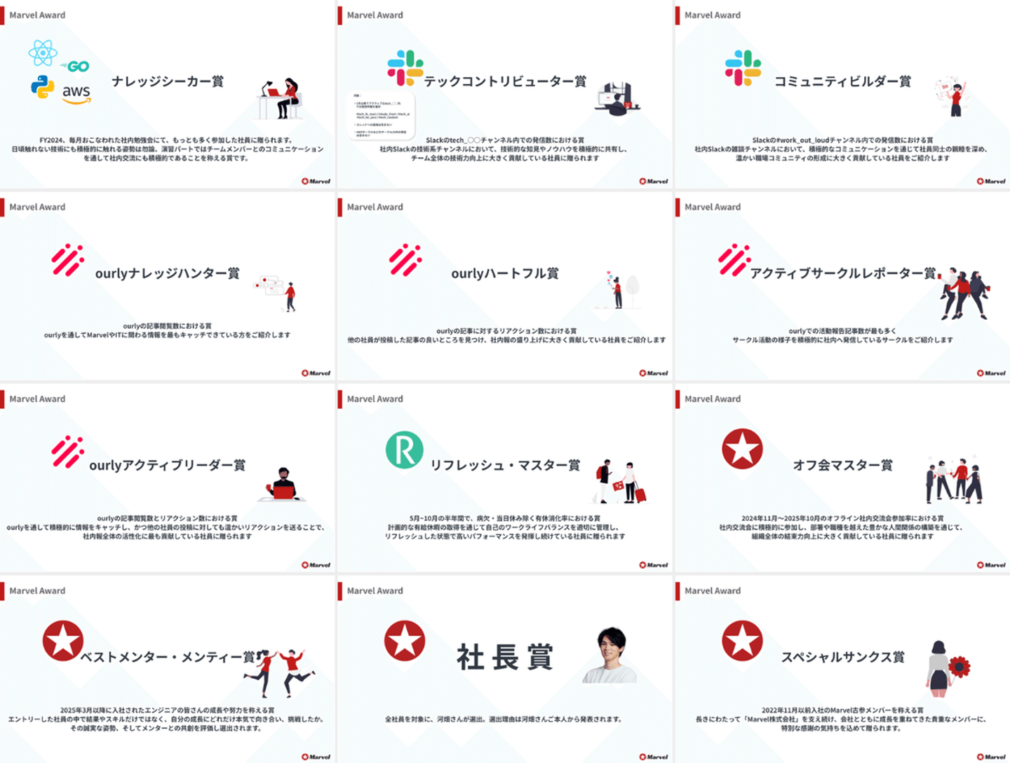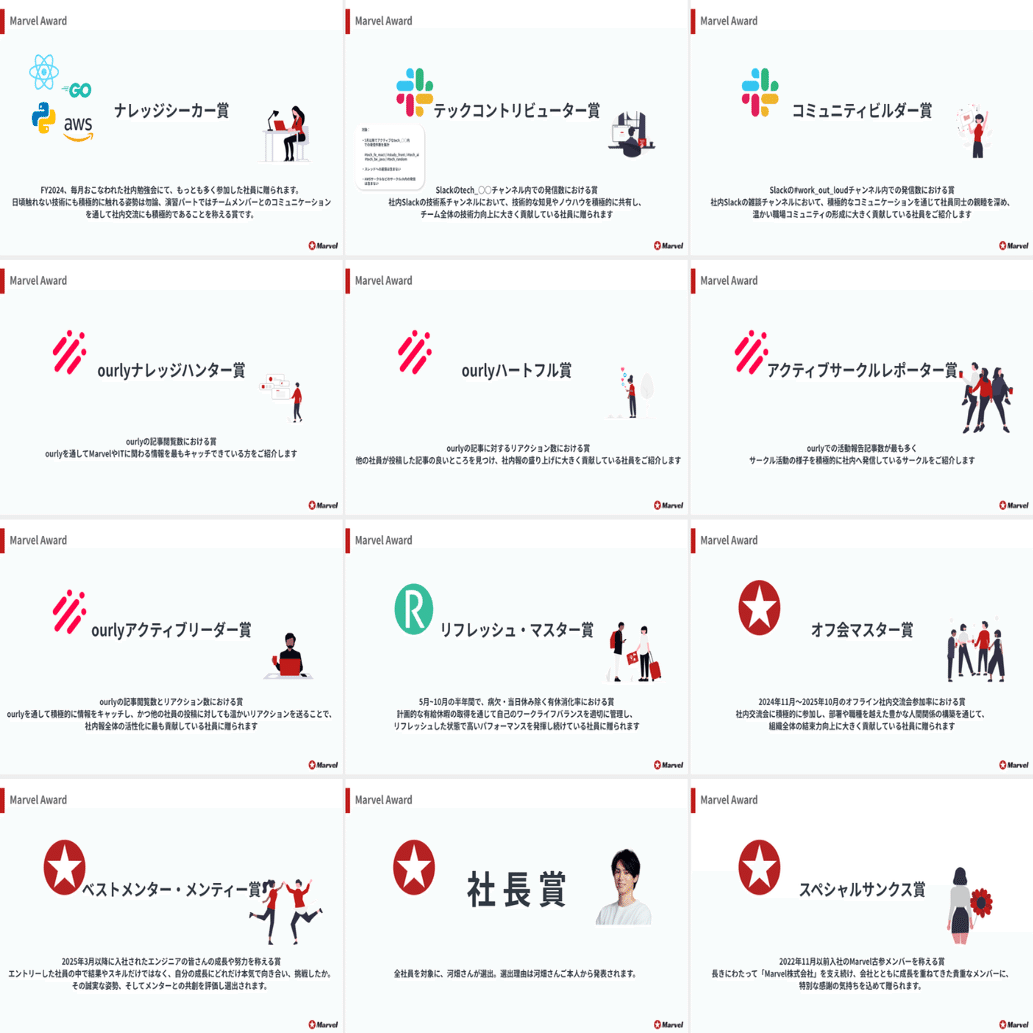 Marvel Awardでは、13個の項目にわたる表彰をおこないました。