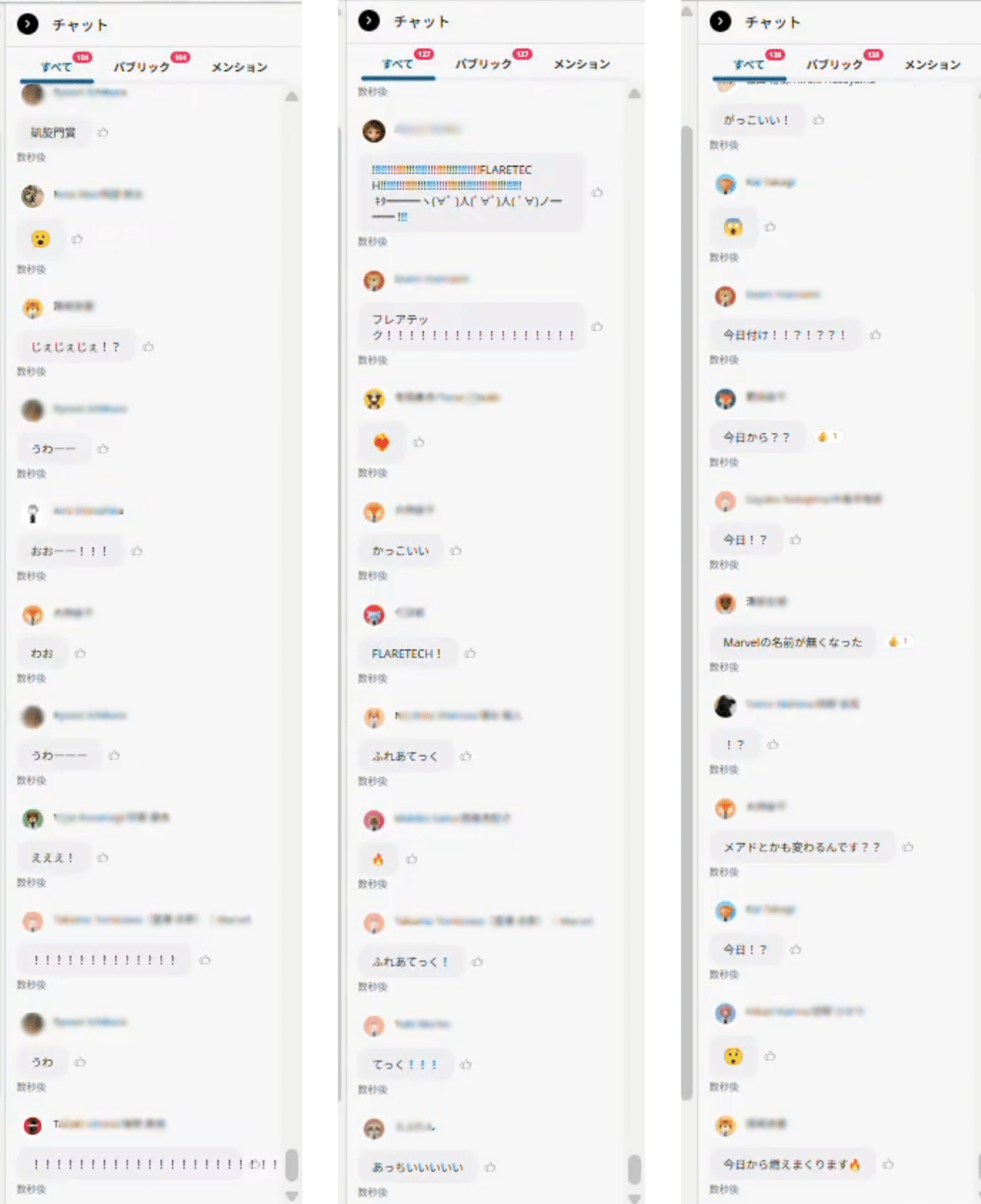 チャット欄には驚きの声と共に、新社名に対する期待や興奮のコメントが溢れ、この日一番の盛り上がりを見せました。「FLARE(炎・閃光)」には、社員一人ひとりの情熱が合わさり、社会を明るく照らす大きな光となる、という想いが込められています🔥