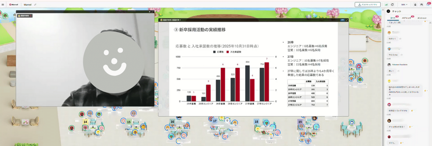 採用部門からは、27卒新卒採用で約800名の応募を獲得し、競争の激しい中途採用市場でも約104名の採用に成功したことが報告されました!