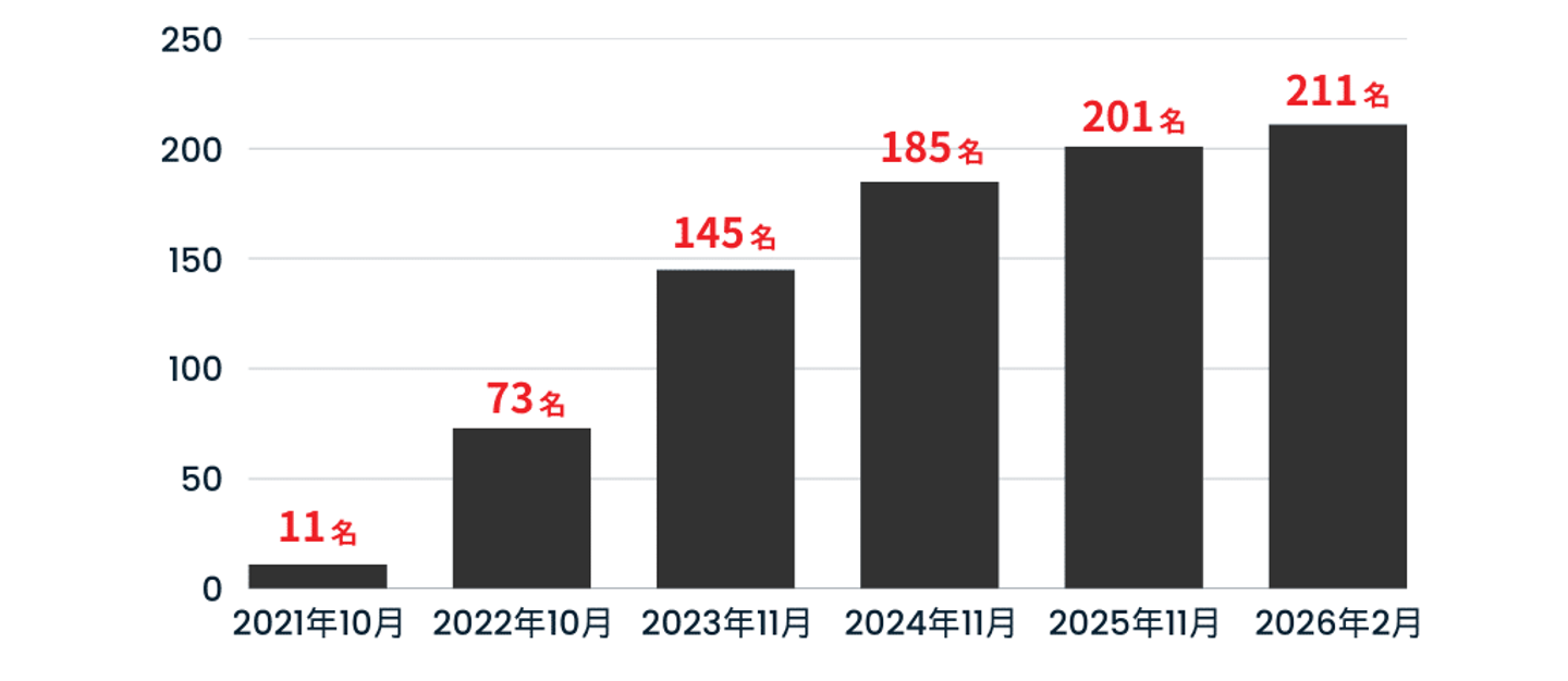 今回は、社員数200名を超え、中堅企業へと差し掛かる今、組織の多様性や技術スタックはどう変化しているのか。2026年2月時点のリアルな社員データの集計結果をお届けします。