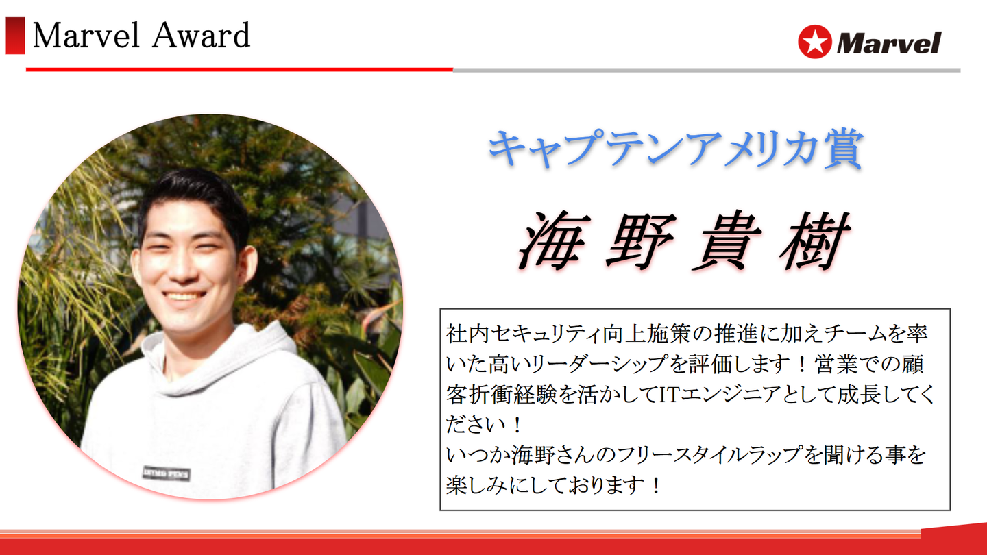 ※キャプテンアメリカ賞とはリーダシップを発揮した社員に贈られる賞のこと