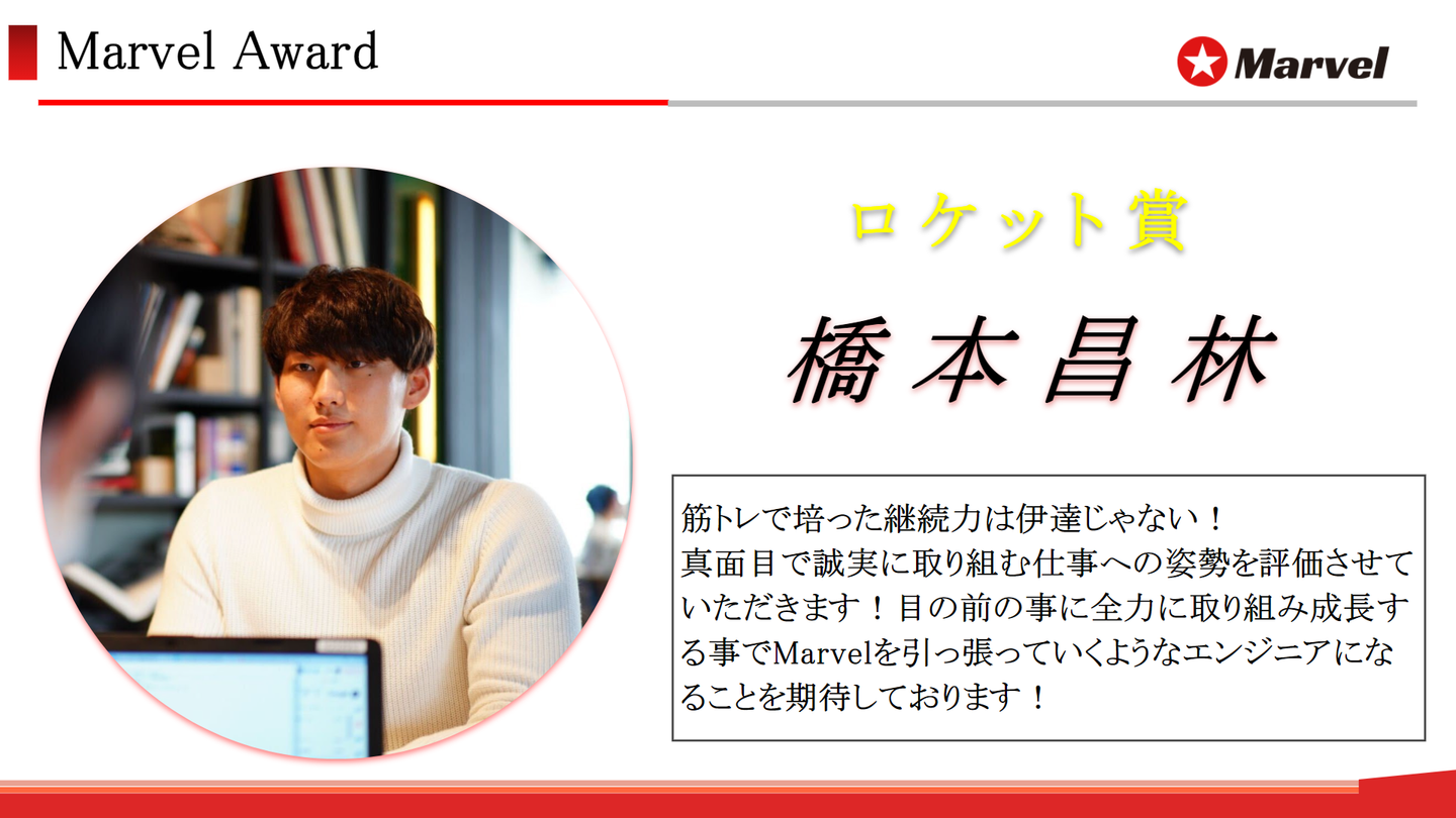 このMarvel Awardの目的は、「頑張ったエンジニアの表彰」