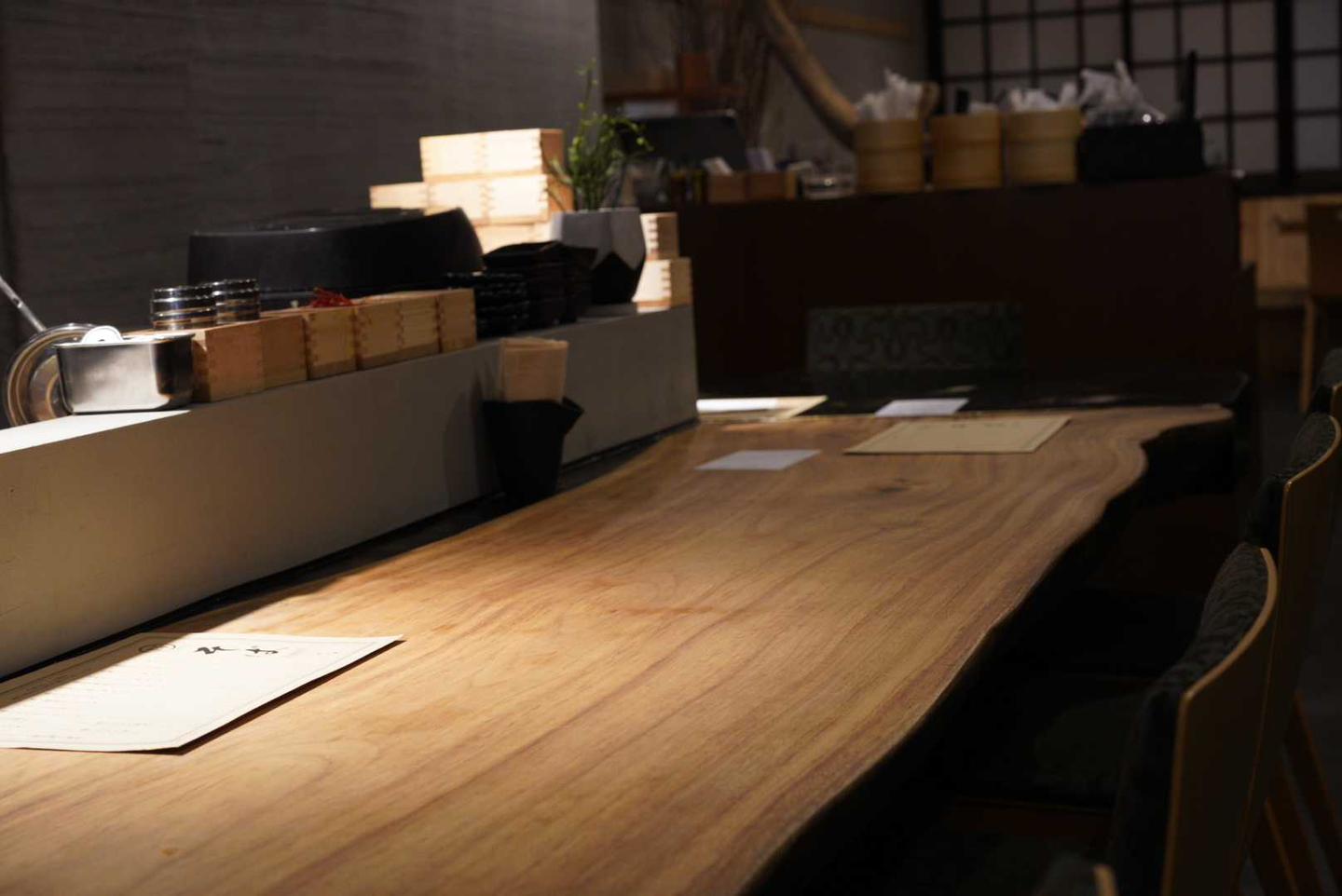 カウンターもおしゃれ!!テーブルも立派!!傷をつけてはいけないと思いスマホはテーブルにおかずポッケにしまいました。これもマナーです!