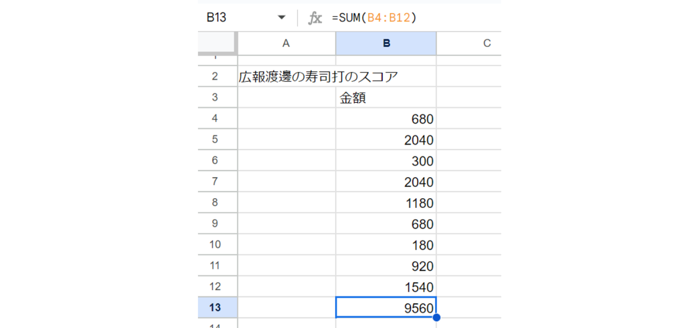 指定をした値の足し算をして合計を出す関数です。