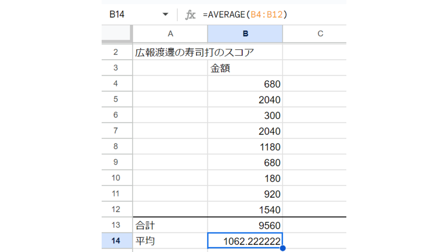 指定した値の平均値を出す関数です。