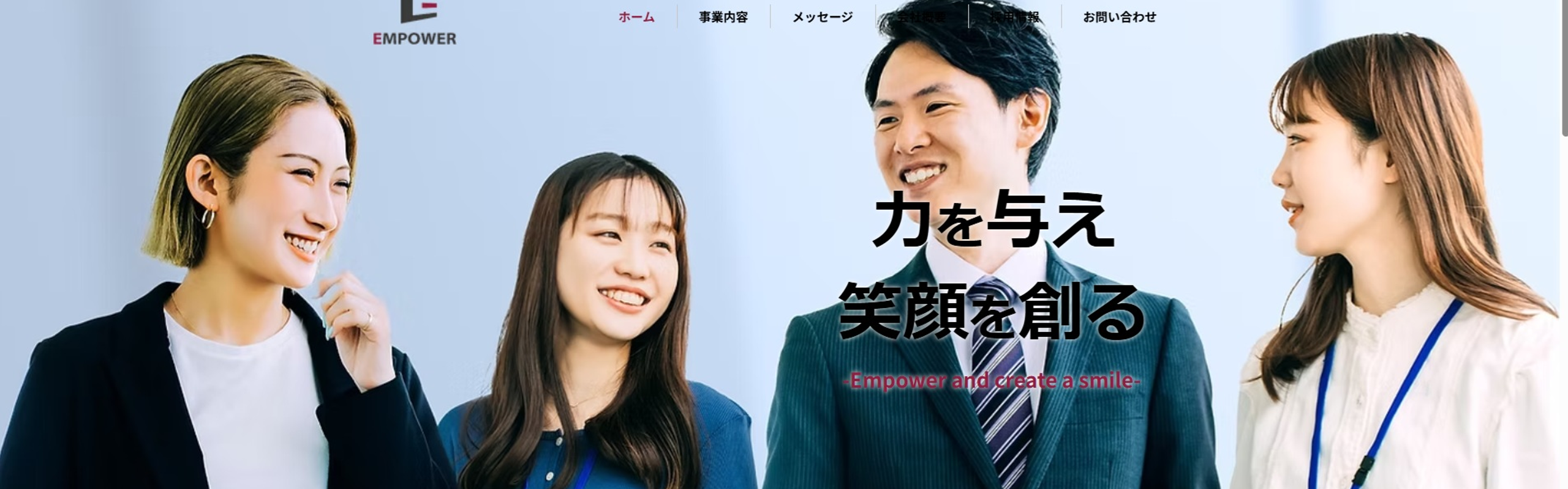 コミュ力、人間力、そうして言葉はよく耳にすると思いますが、誰もがそのような力があるわけではありませんし、その力が無いと成長できないわけでもないと考えています。それぞれが持っているチカラは弊社は宝と考えます。人と話すことが苦手でも、想いはあるはずです。もちろん話すことが得意な人も同様です。エンパワーは様々な人物面のメンバーが集まったいい意味で変わった会社です。どんな変わった感じなのか是非見に来てください!どんな方とも柔軟にあうようなメンバーばかりに驚くと思います。