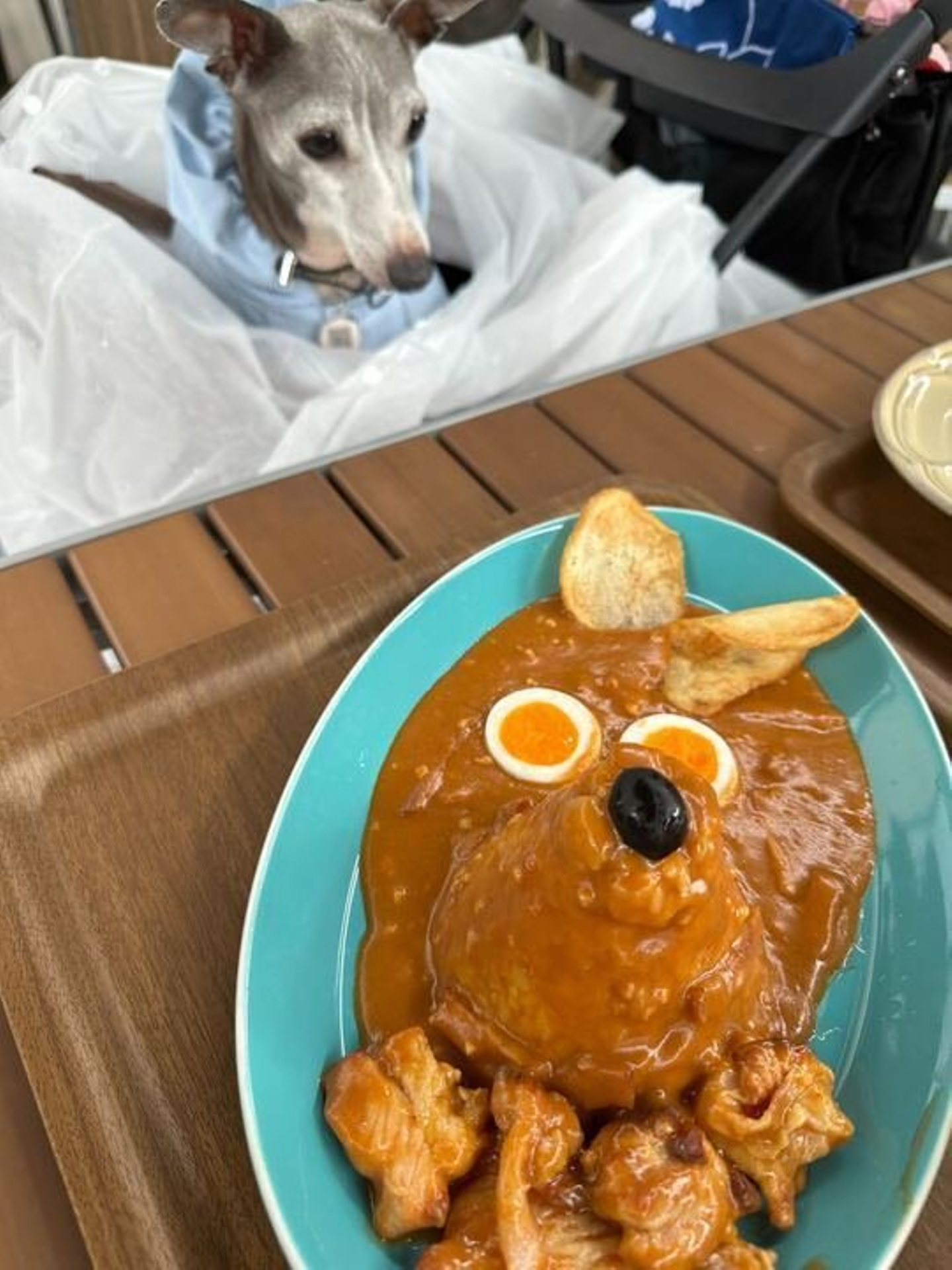 園内にはキャラクターをモチーフにしたカレーがあり、それが愛犬にそっくりで、思わず笑ってしまったそうです。