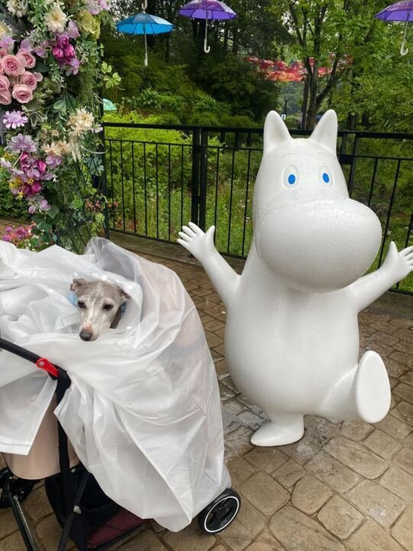 「犬用のレインコート姿が可愛くて…雨でも癒されまくりでした」