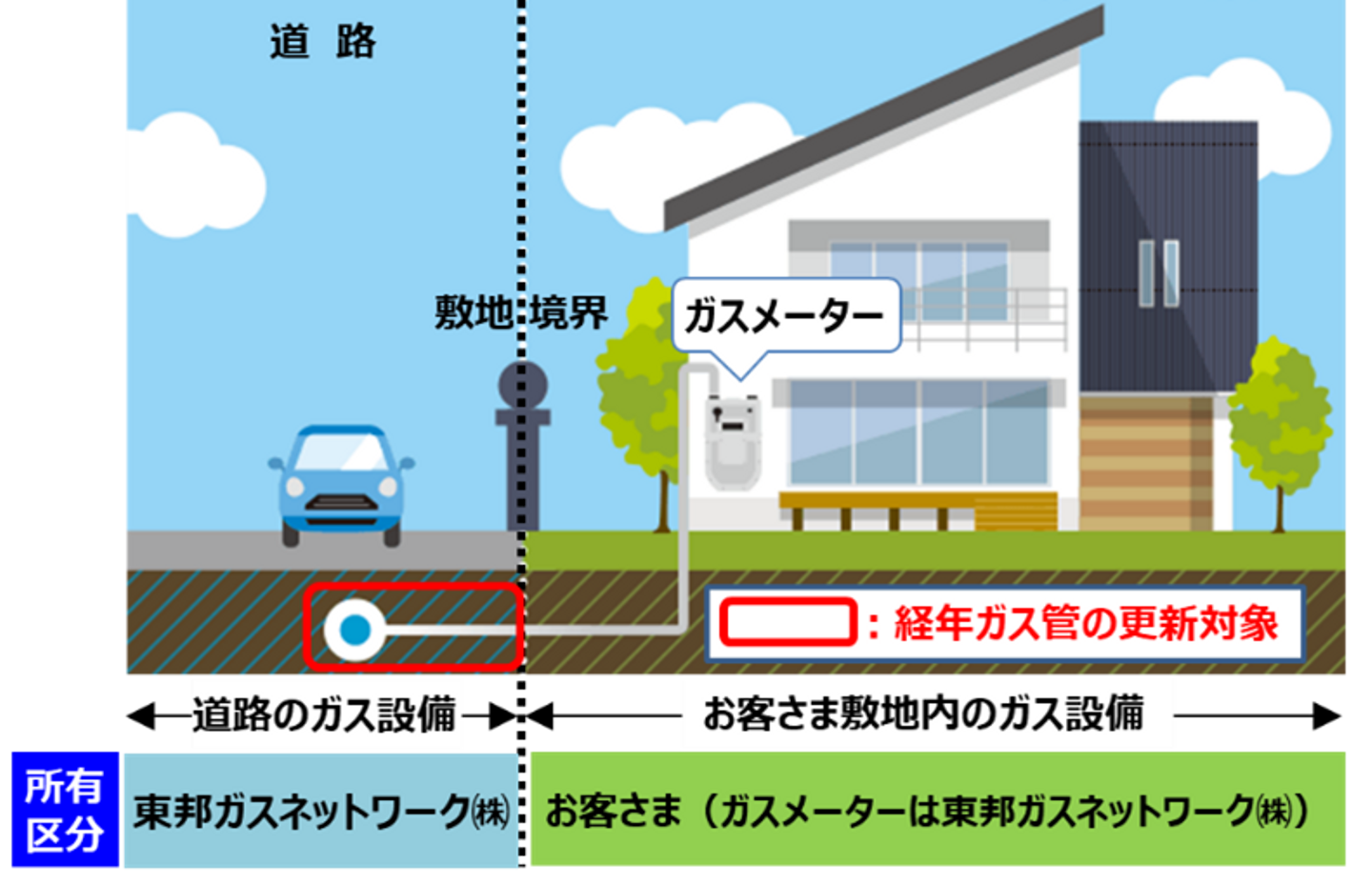 <ガス設備の所有区分と経年ガス管の更新対象>