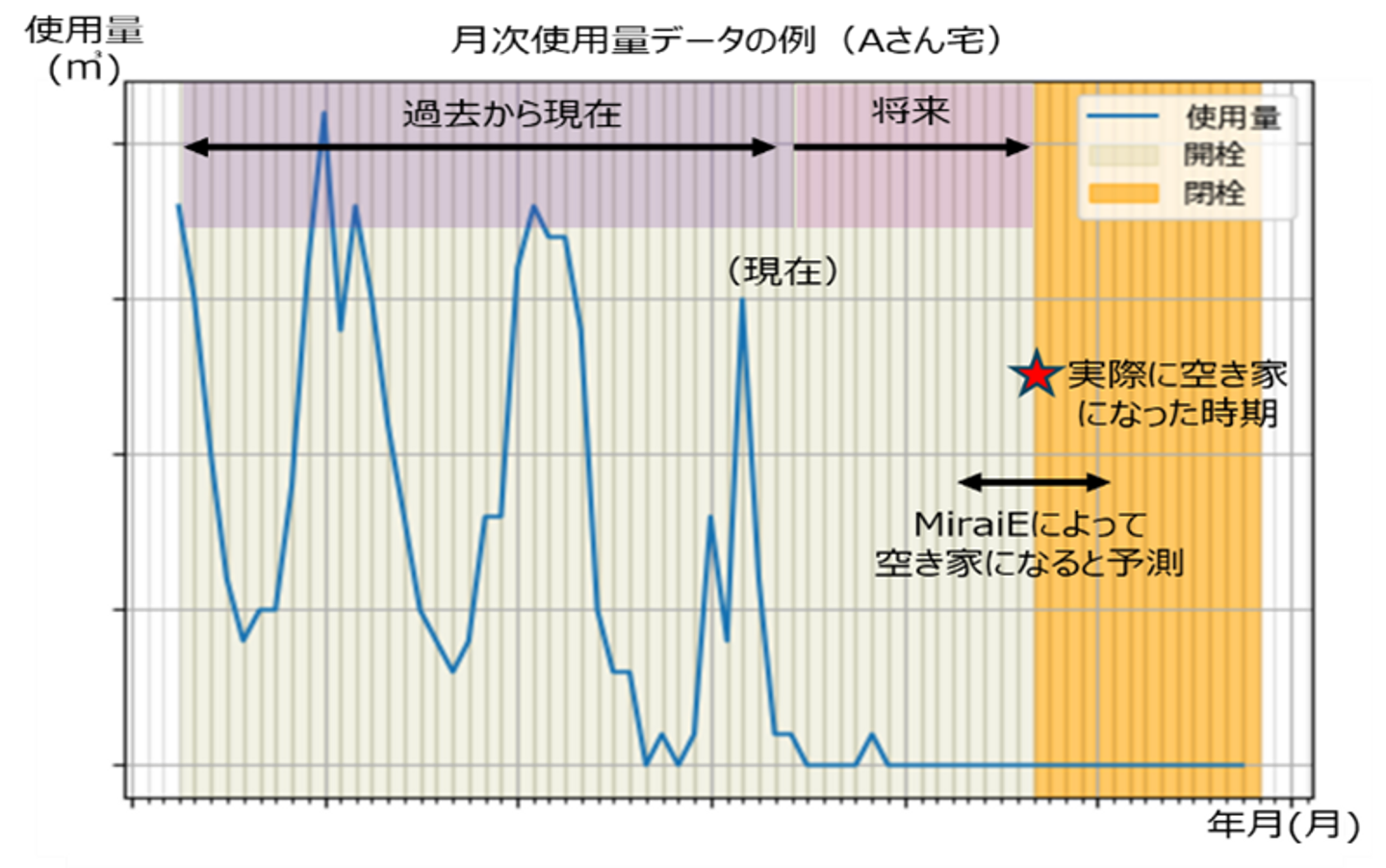 ※MiraiE.ai(ミラーエ)は、効果的かつ効率的な空き家対策、老朽インフラ対策の実現に向け、社内データを用いて現在から将来 までの住居単位の空き家発生・再入居を予測するAIシステム(マイクロベースによる特許取得済み)。