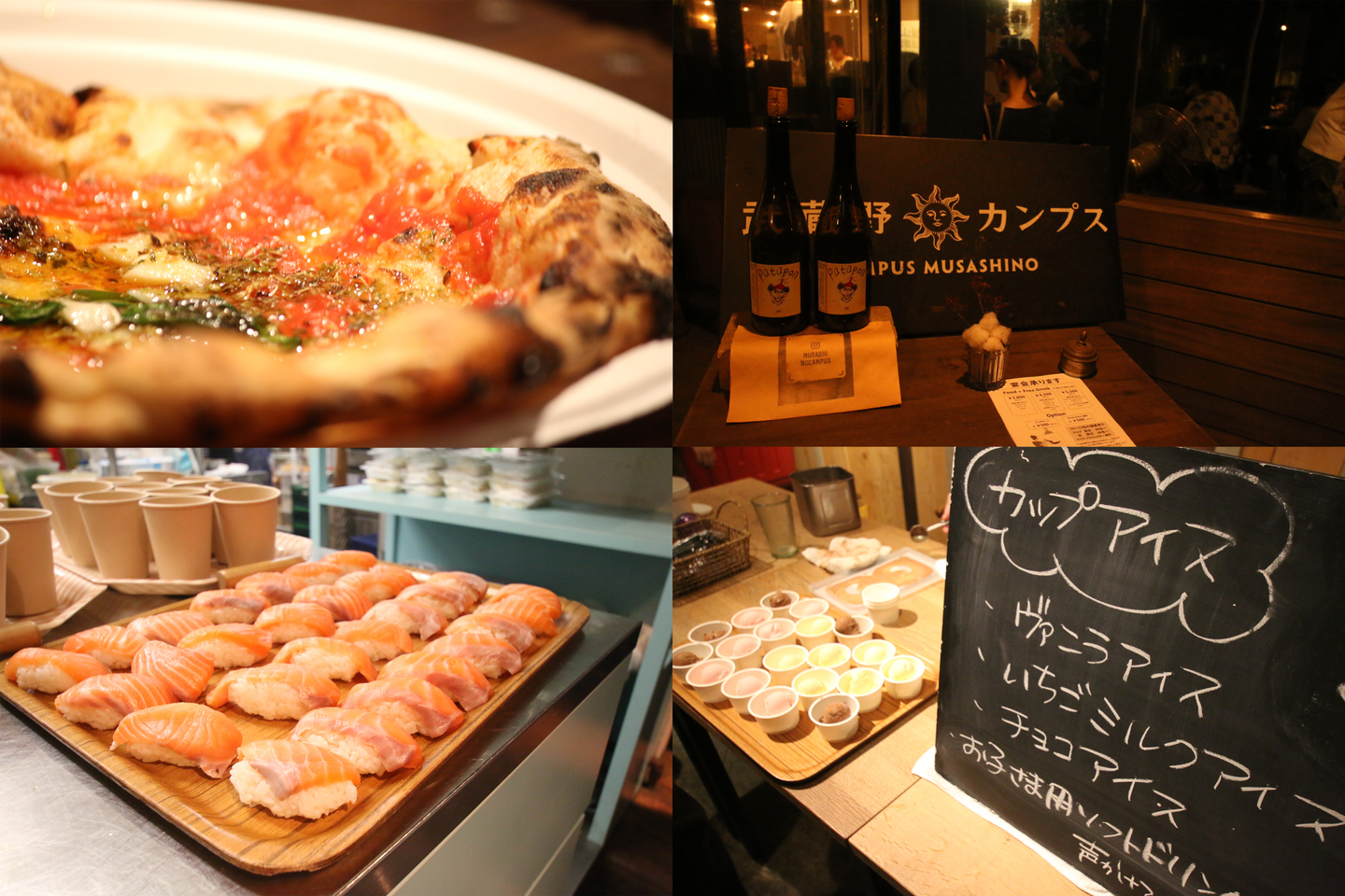 料理はカンプスの名物料理であるピザはもちろん、お寿司やアイスクリームなど幅広いラインナップ。
