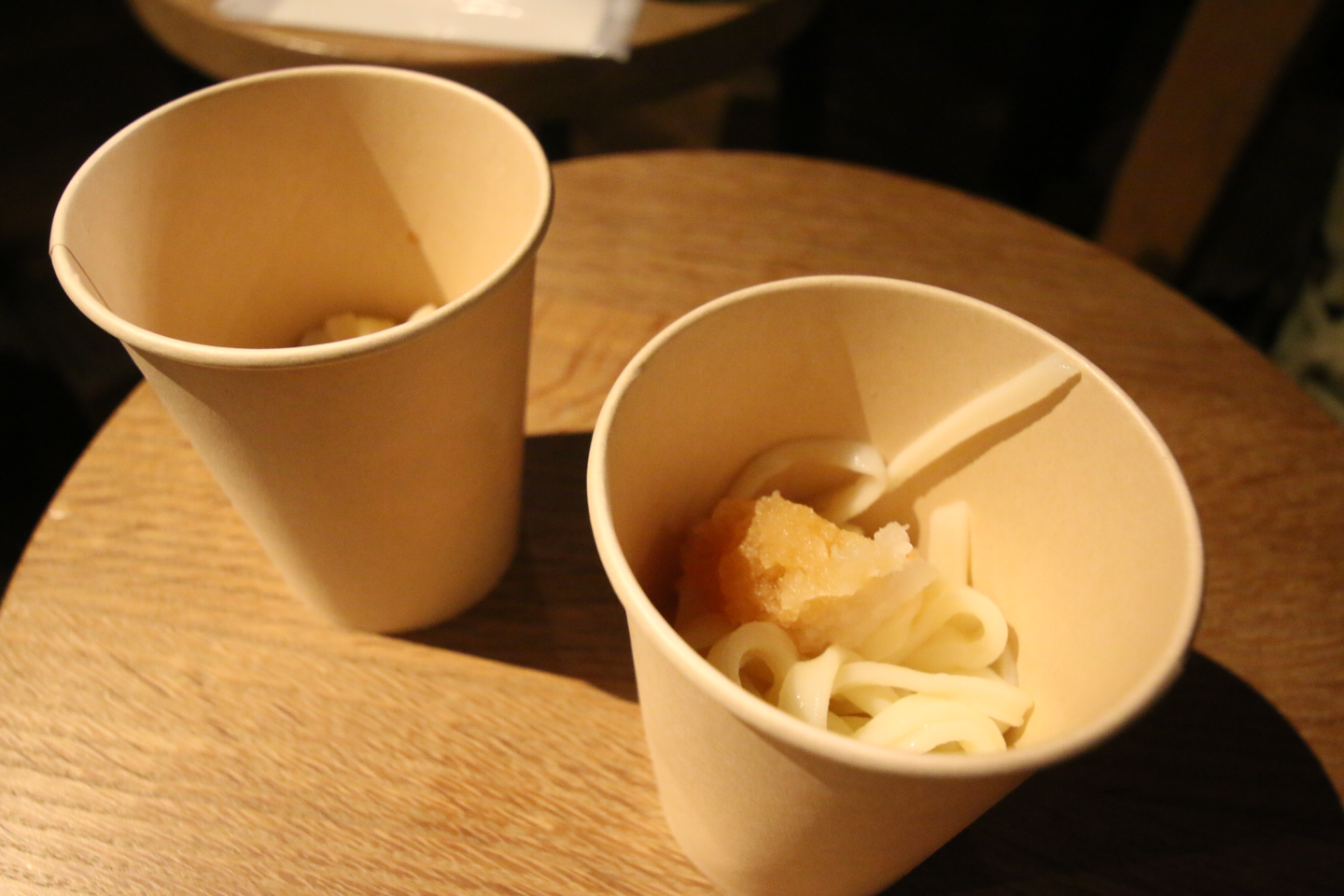 「自分Wantedly用の写真撮らなくちゃいけないんで」というオーラで牽制しながら、一眼レフ片手にカウンターを陣取ること10分、なんとか手作りうどんを入手。これがとてもおいしい!小学生のころ、自分の父親が何を思ったかうどんづくりに目覚めて、以来毎週休日の昼はそのうどんを食べなくちゃいけないというイベントが発生したことがあったのですが、それがこれくらい美味しかったらどんなに良かっただろう、なんてことを思いました。