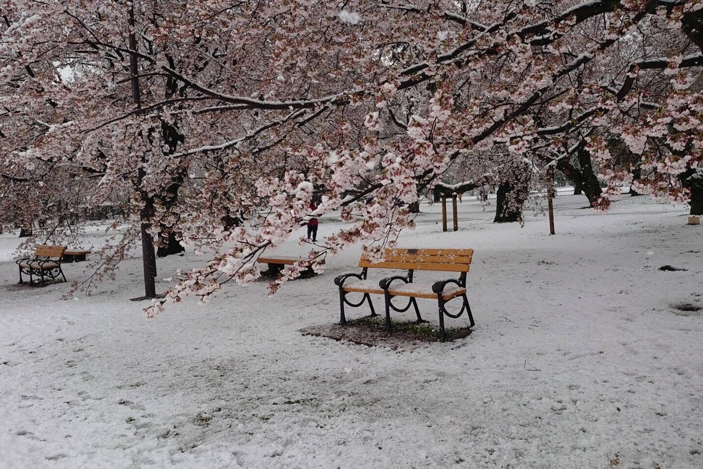 「めったに見られない」と、寒空の下撮影された雪桜の写真をシェアしてくれました。