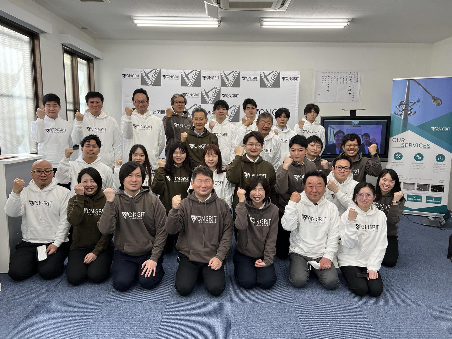 \最後には、お揃いのパーカーでみんなで撮影!新オフィスで新しい気持ちでスタートします/