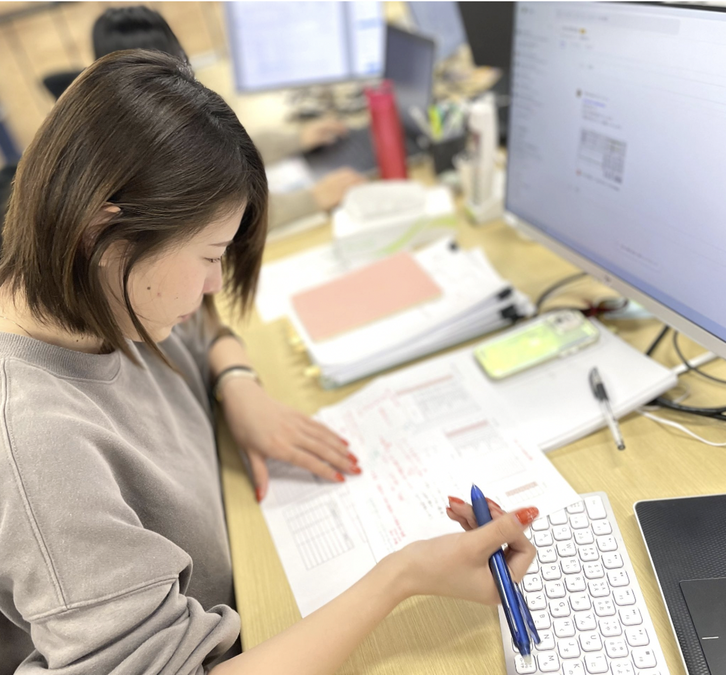松本:私は元々、集中して物事を進めるのが得意なのでデータ入力やチェック業務は自分に合っていると思います。また、最近だと社内で勉強会があって、「この損傷は今後こういう風に繋がってくる」等理解しながら覚えられるのがとても楽しく感じています。段々知識もついているなと感じています。