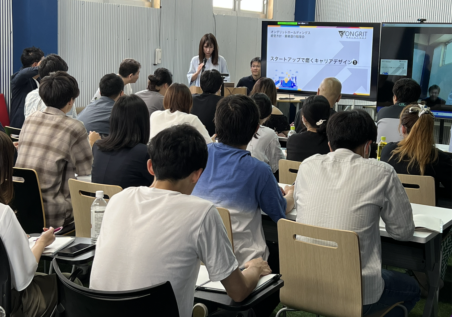 初めに・・・代表の森川社長から、今期会社が向かうべき方向性や目標についてをお伝え頂きました!みんなとっても真剣に、メモをとりながら聞いています_φ(・_・