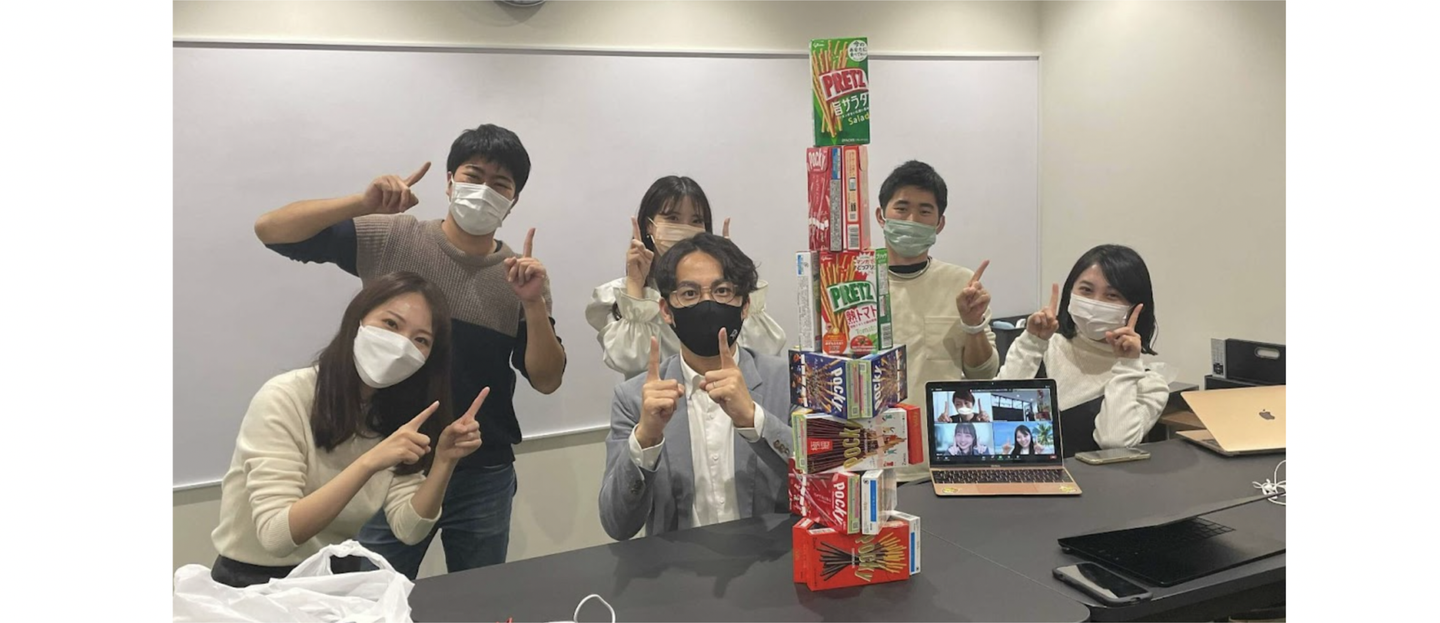 ▼ポッキーの日に誕生日を迎えた事業部長と記念撮影
