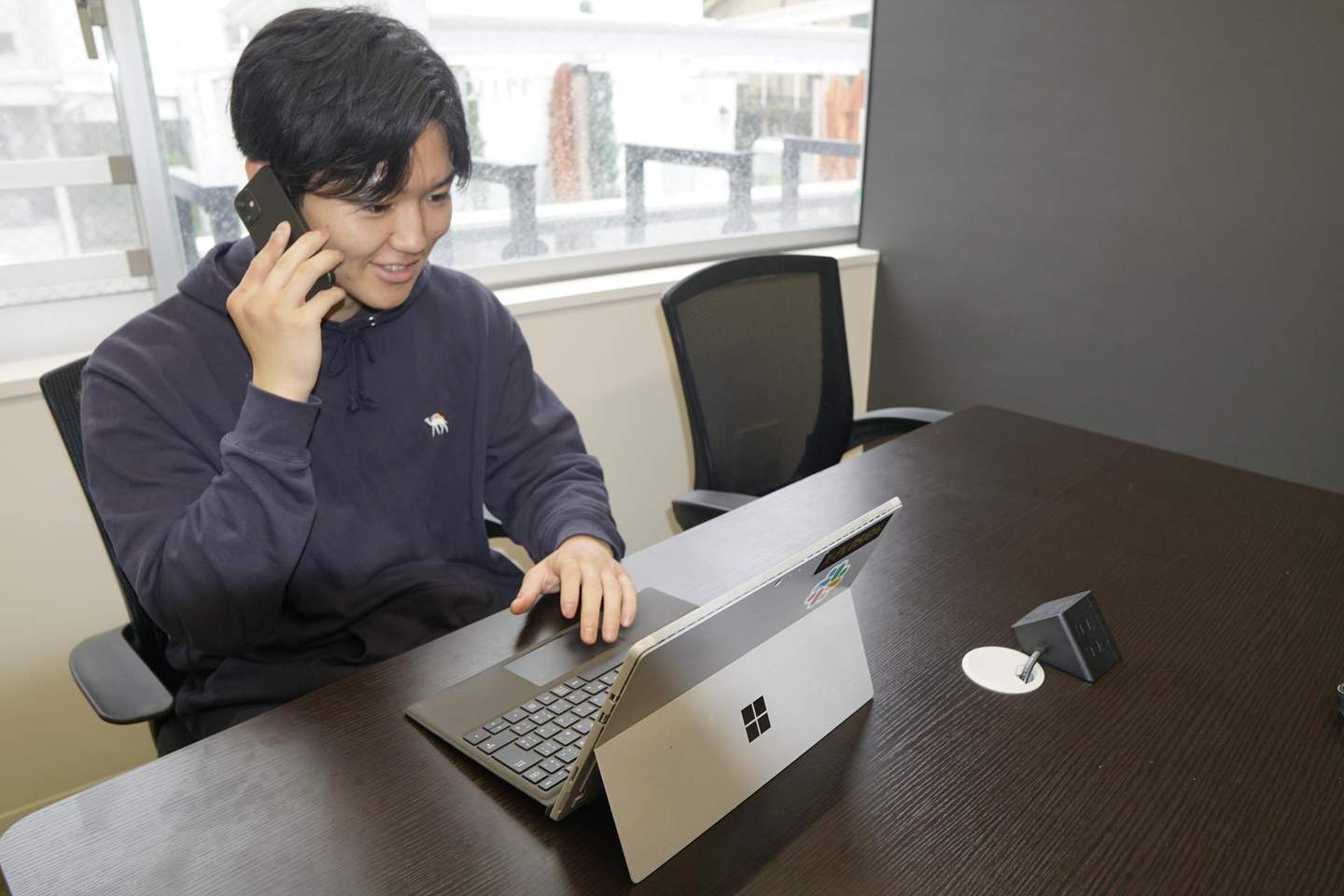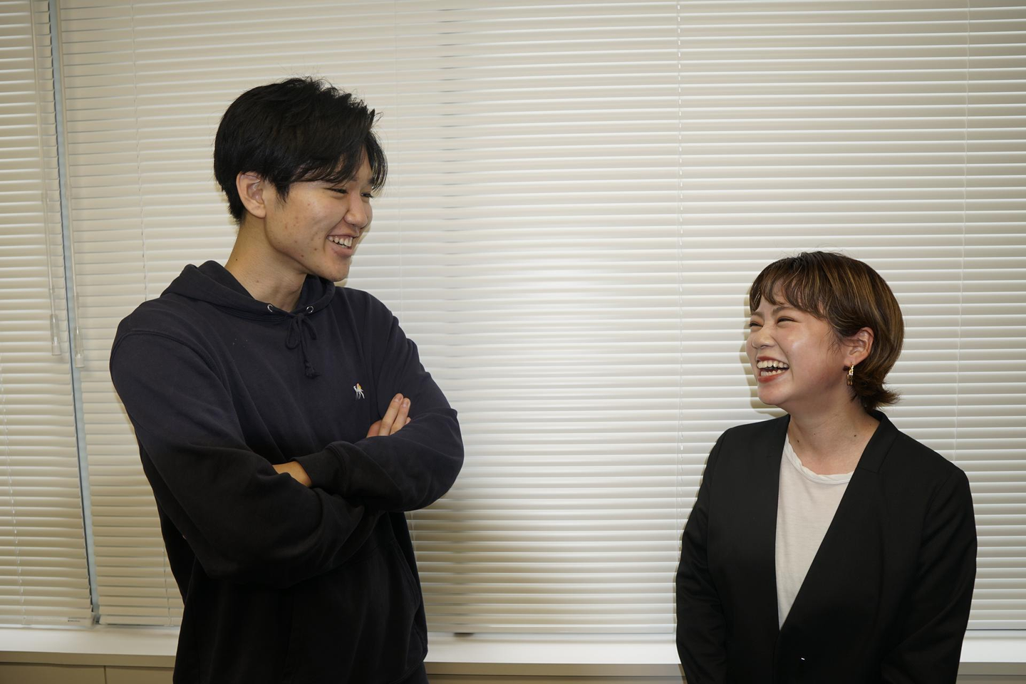 インターンも正社員も垣根がなく、目標に向かって一緒に熱く仕事をしています。誰かが受注した時は自分ごとの様に喜び、「ありがとう」という言葉が飛び交っています。僕が初めて受注した時も、みんな大喜びしてくれました。いまでも受注した日は社員の先輩と熱い話をしながら一緒に帰ります。