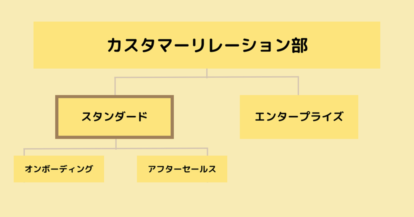 Another worksのCSは、スタンダードとエンタープライズの2つのチームに分かれています。私がMgrを務めるスタンダードは、更にオンボーディングとアフターセールスの2つのチームに分かれています。