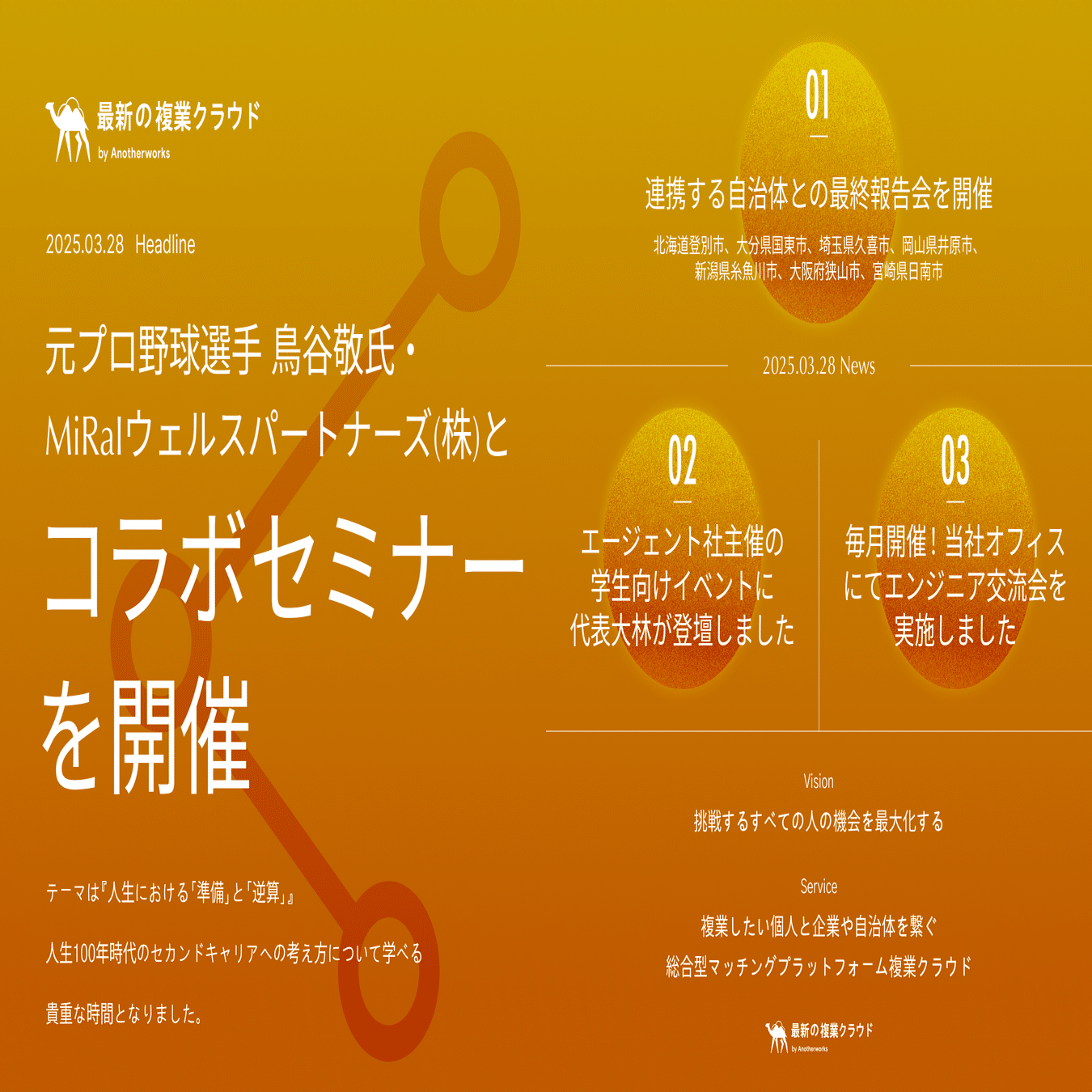 『アナザーワークス通信』は、株式会社Another worksの3か月間の活動をまとめた発信コンテンツです。この通信を読めば、最近のアナザーワークスの動きや取り組みを一目でキャッチできます!早速スタートです!