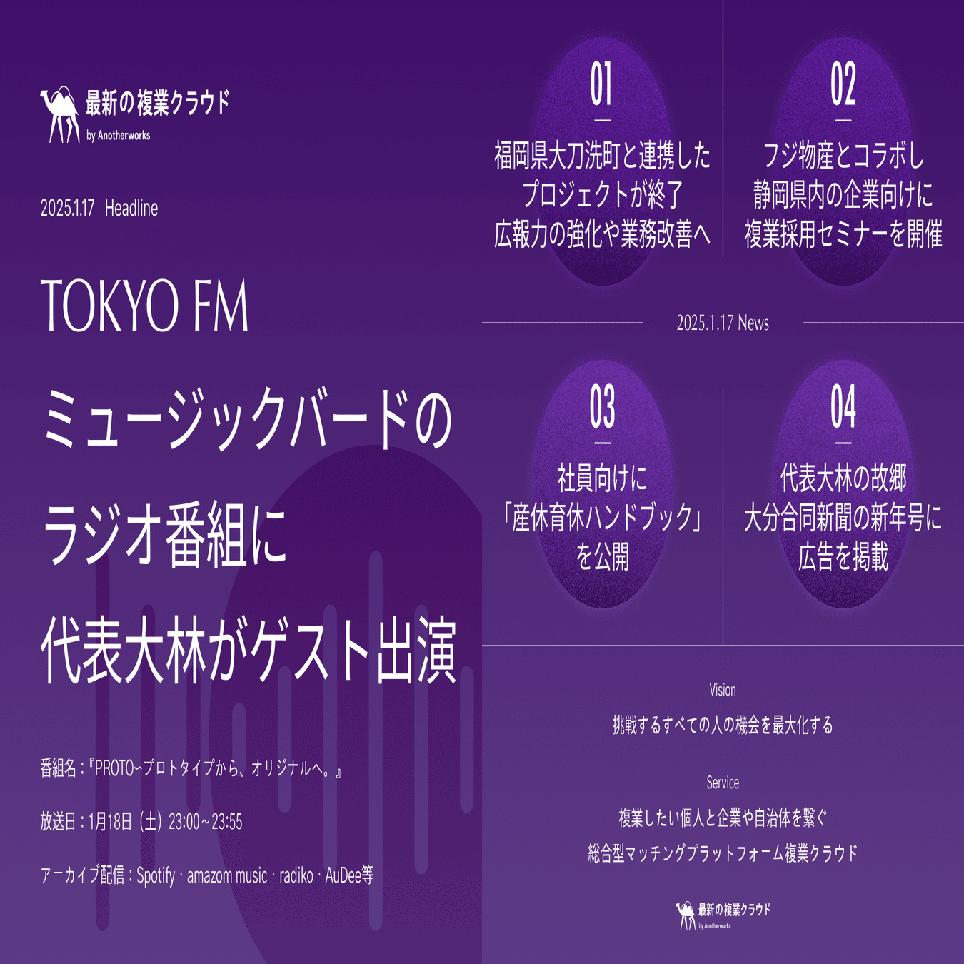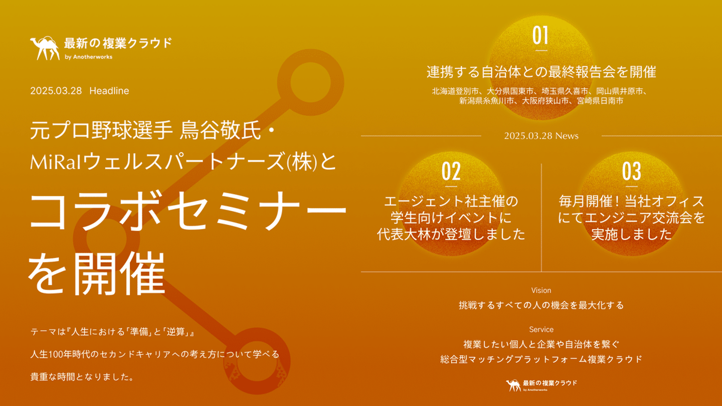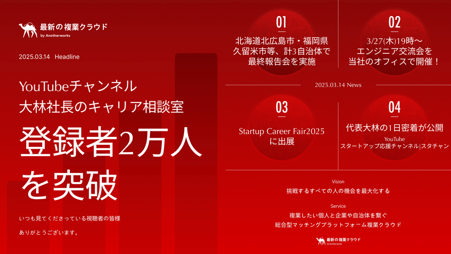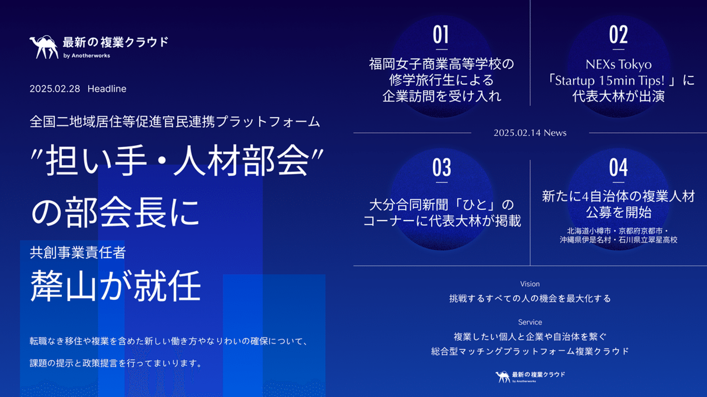 Another worksでは、『最新の複業クラウド』を通じて、社内外のニュースや成果をタイムリーに発信しています。最新動向はぜひXやFacebookをフォローしてチェックしてみてください!