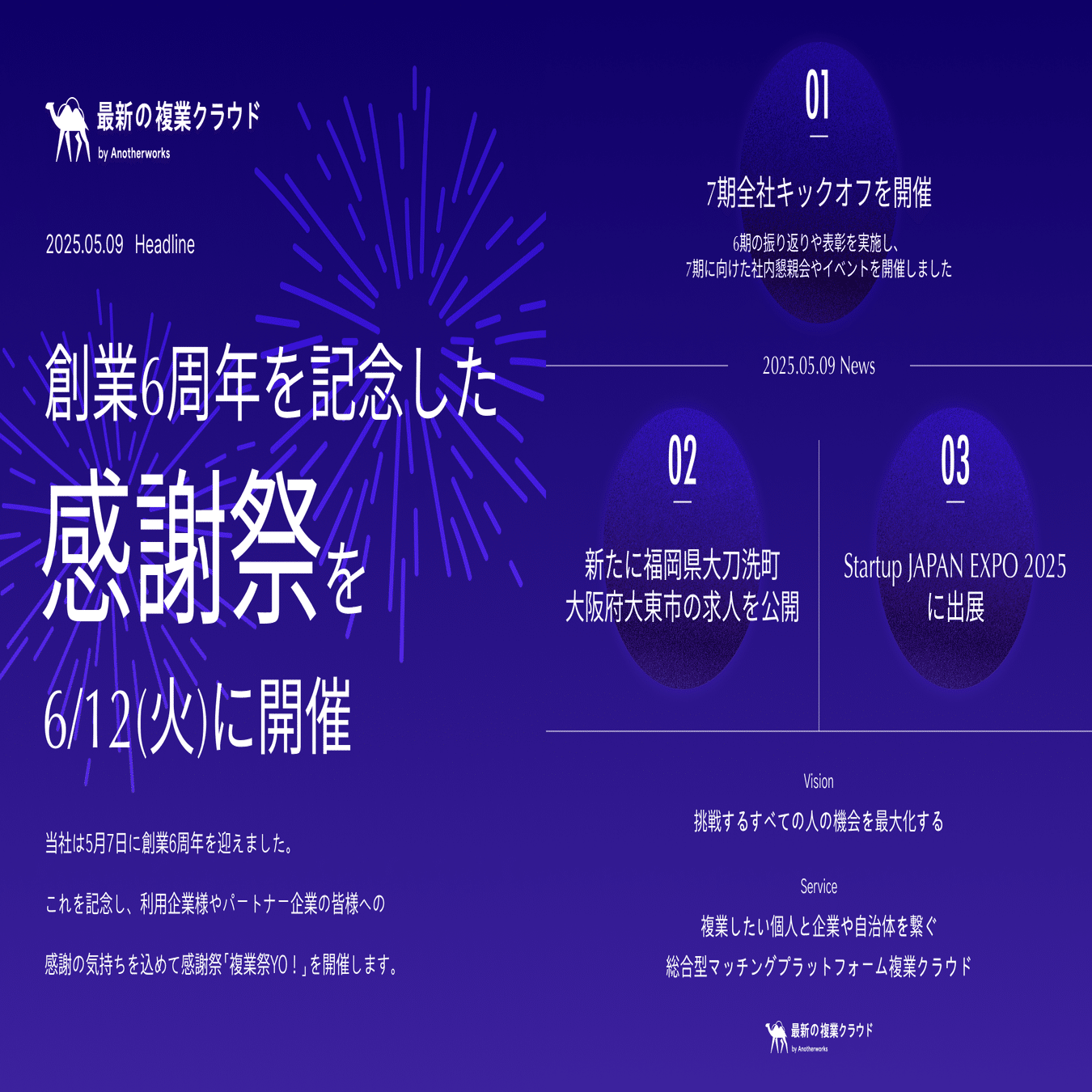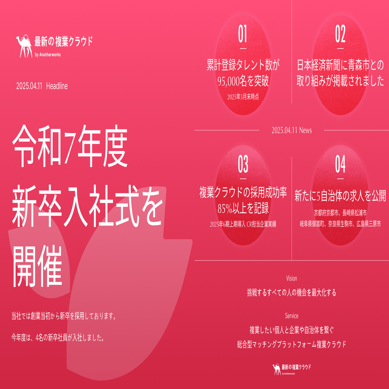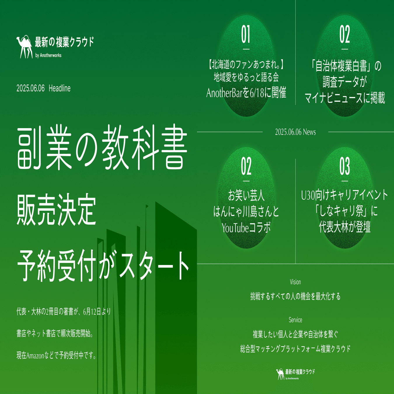 Another worksでは、『最新の複業クラウド』を通じて、社内外のニュースや成果をタイムリーに発信しています。最新動向はぜひXやFacebookをフォローしてチェックしてみてください!
