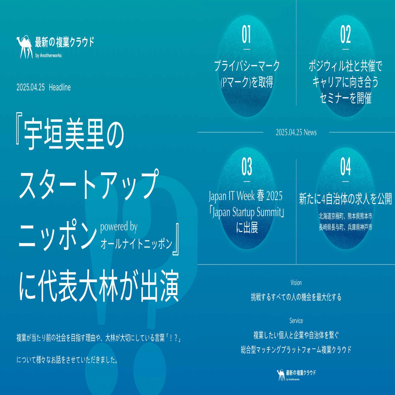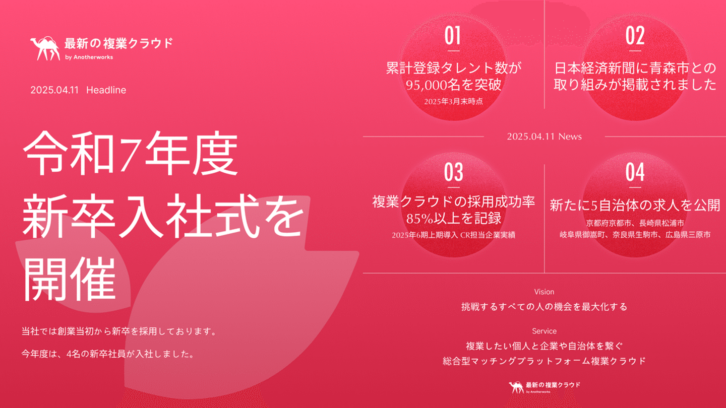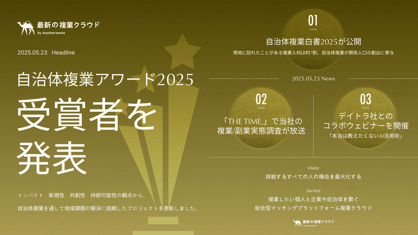 Another worksでは、『最新の複業クラウド』を通じて、社内外のニュースや成果をタイムリーに発信しています。最新動向はぜひXやFacebookをフォローしてチェックしてみてください!