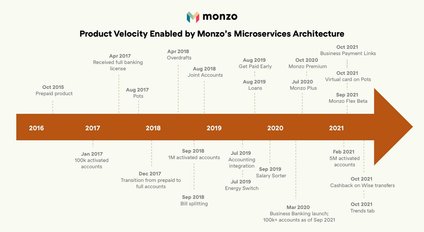 例えば、Monzoは2015年にプリペイド形成でのサービスを開始してから、ローンやBNPLのようなお金を「借りる」機能を通じて金利を得たり、投資商品を提供する証券会社や電力会社への送客を通じて収益源を拡大しています。2020年から2021年でIRF収益は£36.6Mから£47.7Mに増加しているのに対して、金利収益は£1.7Mから£11.1Mと大幅に成長しており、収益複層化に注力していることが見受けられます。*2