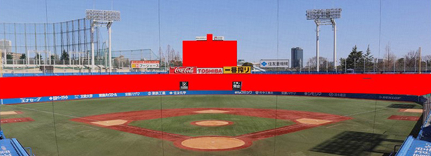 明治神宮野球場のオープンハウスグループの広告看板や特設ホームランゾーン以外(赤塗り部分)にホームランが入ると、1億円の家をプレゼントするという企画でした。