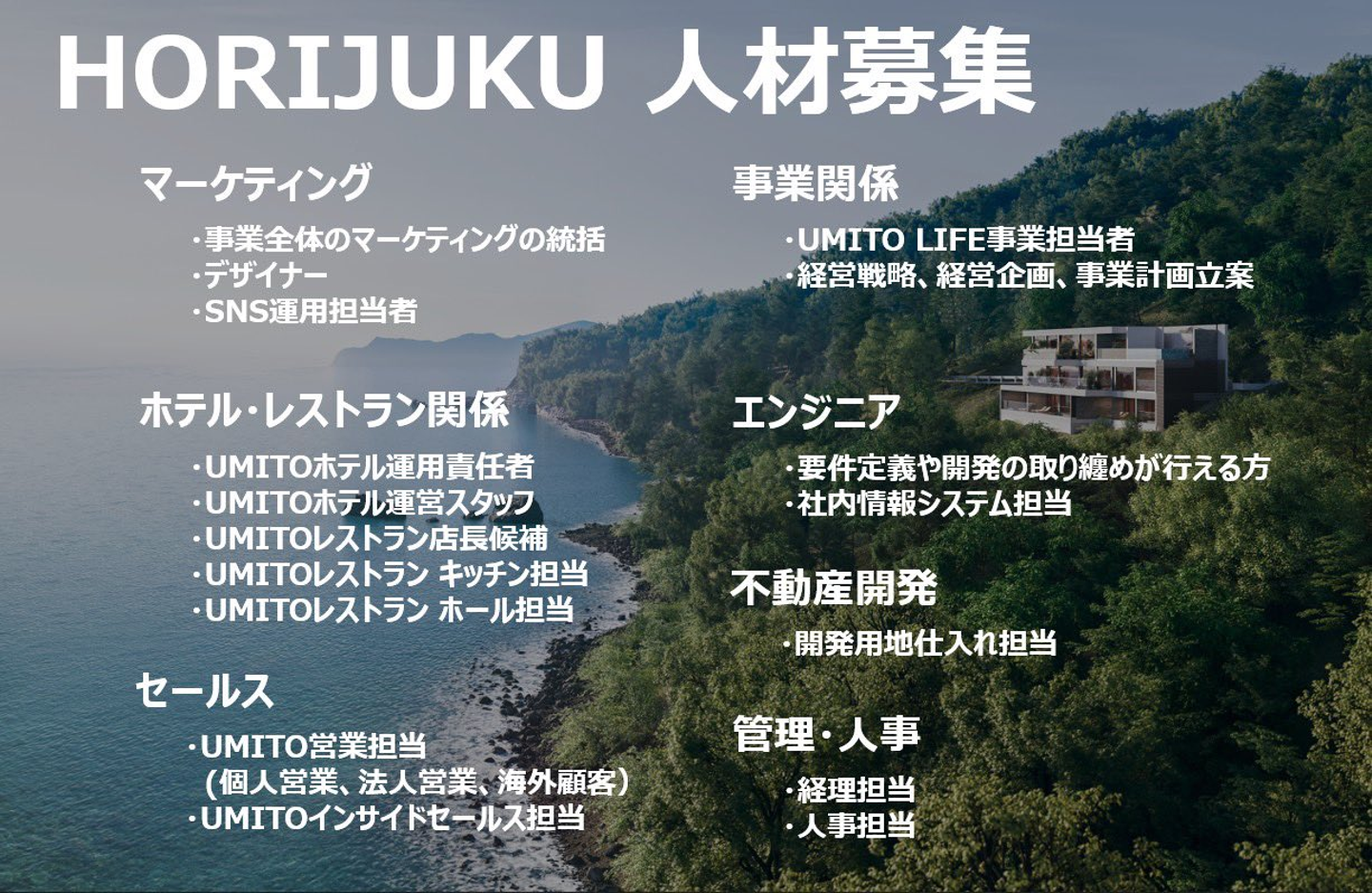 UMITOは世の中にないワクワクする不動産を想像するために、日々新しいことに挑戦し続けています。海の目の前のリゾートホテルUMITOで、遮るもののない絶景のホテルを日本各日建築しています。不動産開発プラットフォームを運営しており、都心に新築RCマンションを100棟以上プロデュースしてまいりました。