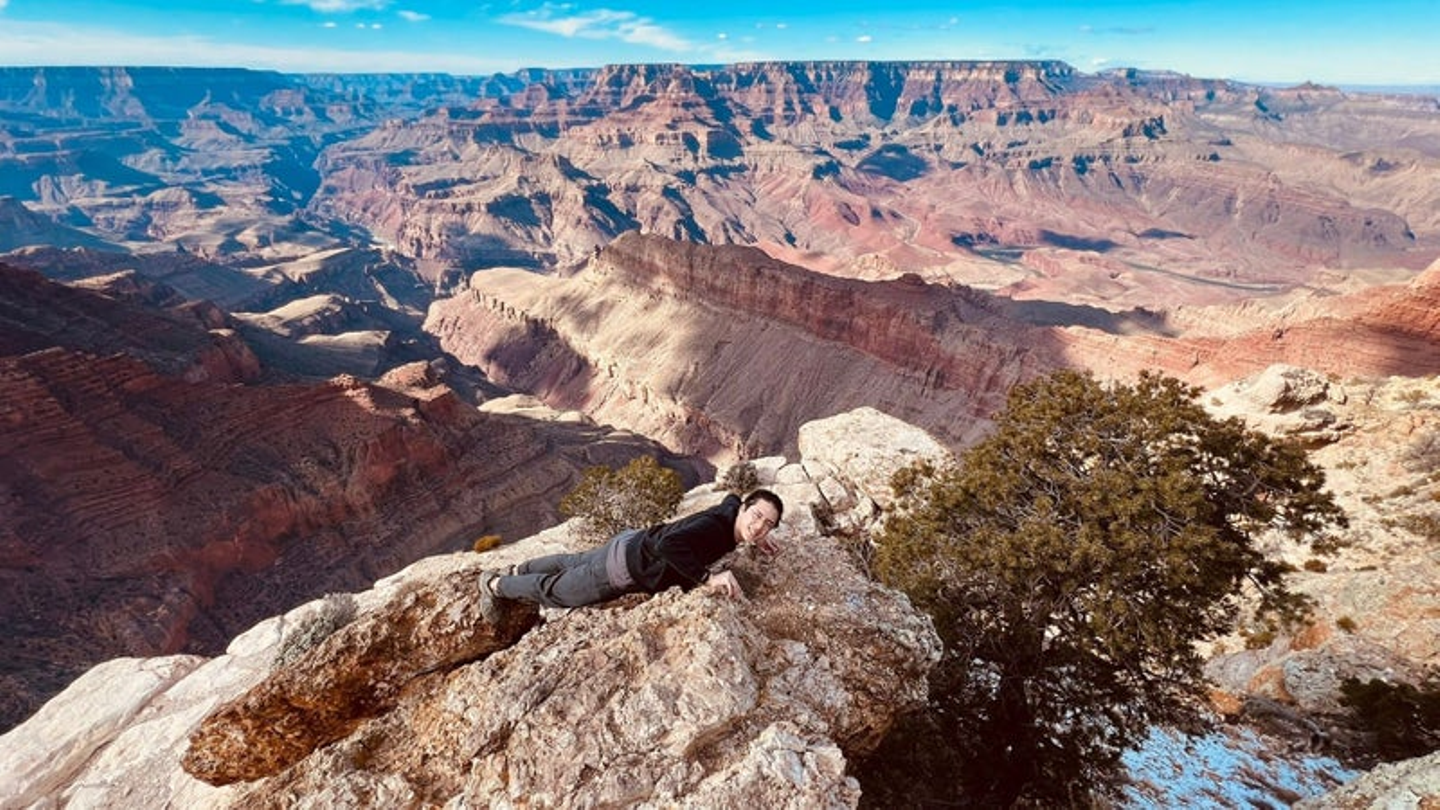 ※グランドキャニオンの崖キワキワで腕立て伏せを決め込む図