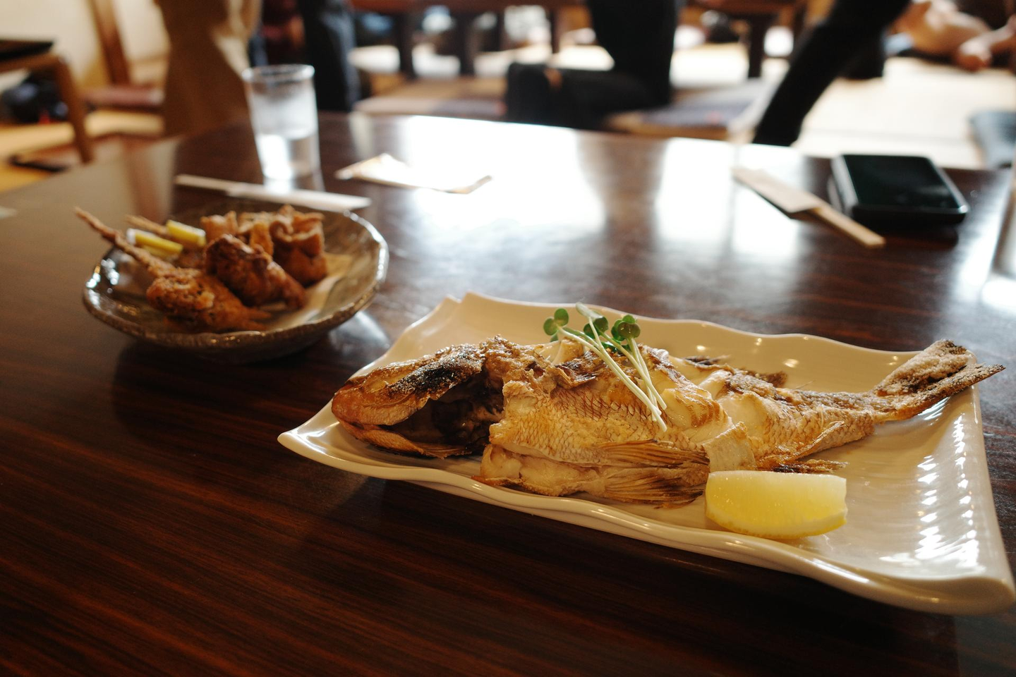 お刺身にから揚げ、タイの煮つけや焼き魚まで、テーブルいっぱいに並ぶ 豪華な海鮮料理!