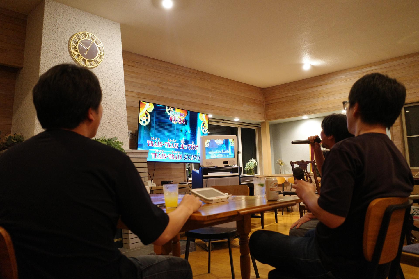 今回の宿には、テーブルゲームや卓球、ビリヤードに加え、なんとカラオケまで完備。