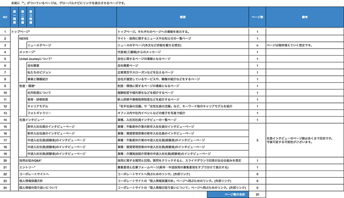 市場調査分析の内容を元に、リクルートサイトのサイトマップを作成します。