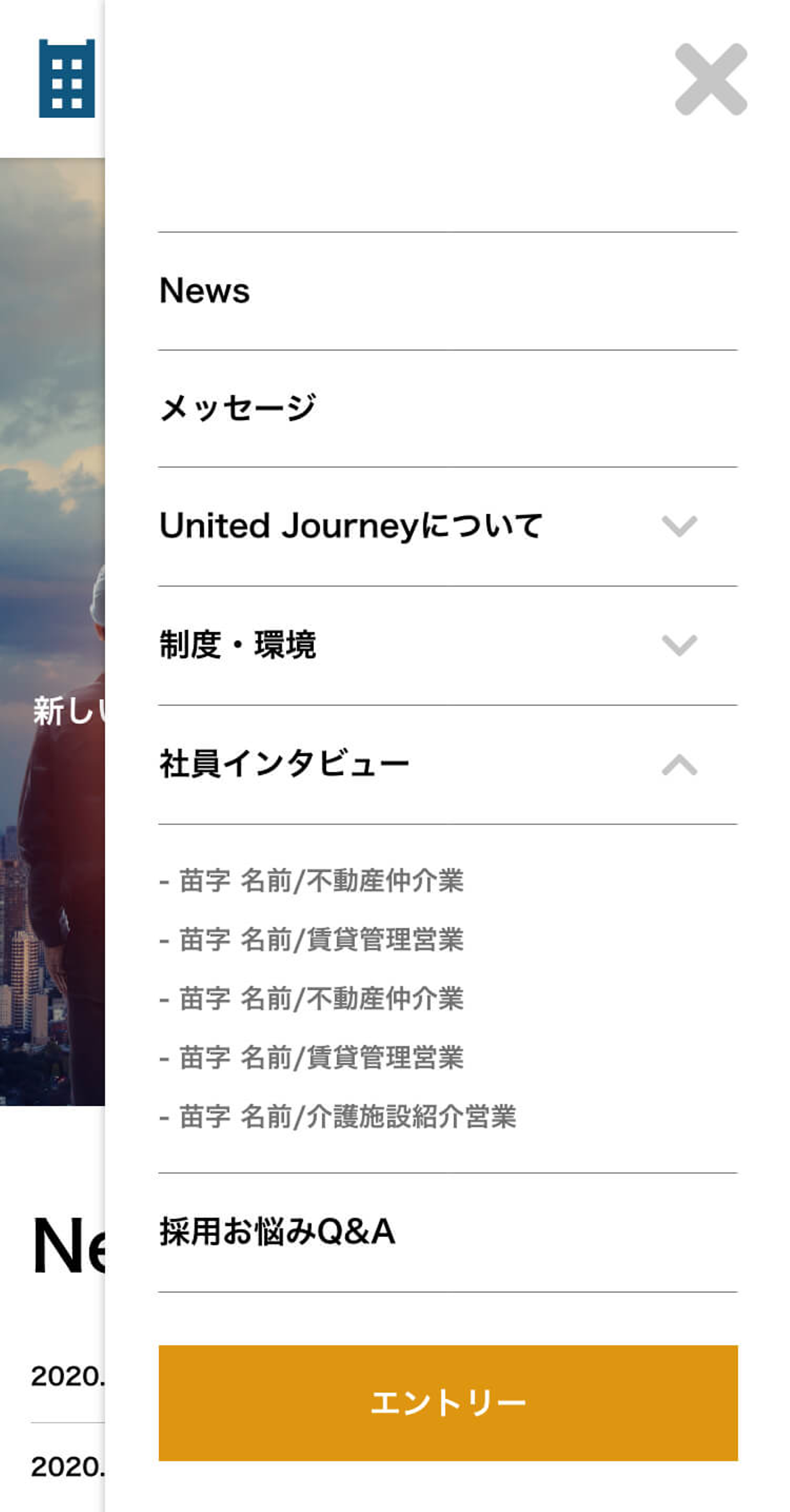 「United Journeyについて」「制度・環境」「社員インタビュー」は