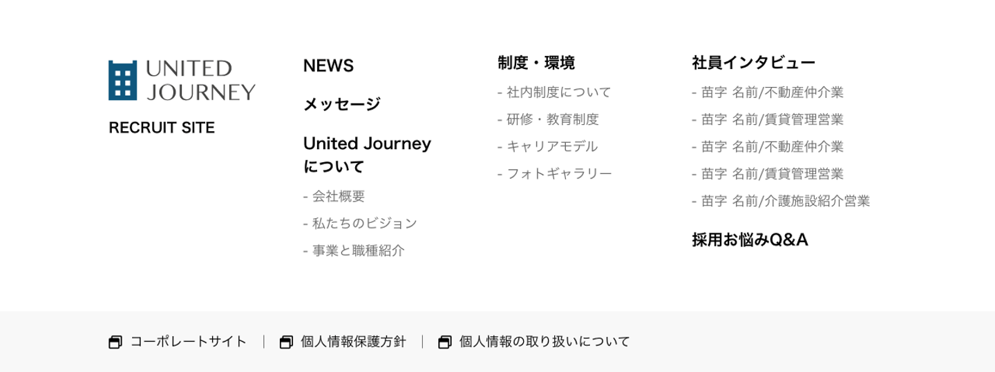 また、フッターの下部にはUnited Journeyのコーポレートサイトなどへの