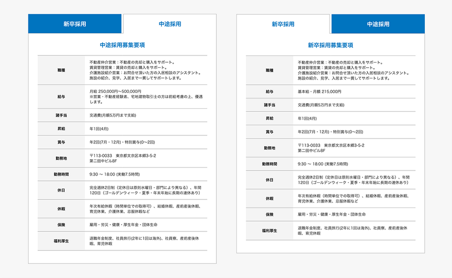 架空の不動産企業のリクルートサイトを作成することになりました。