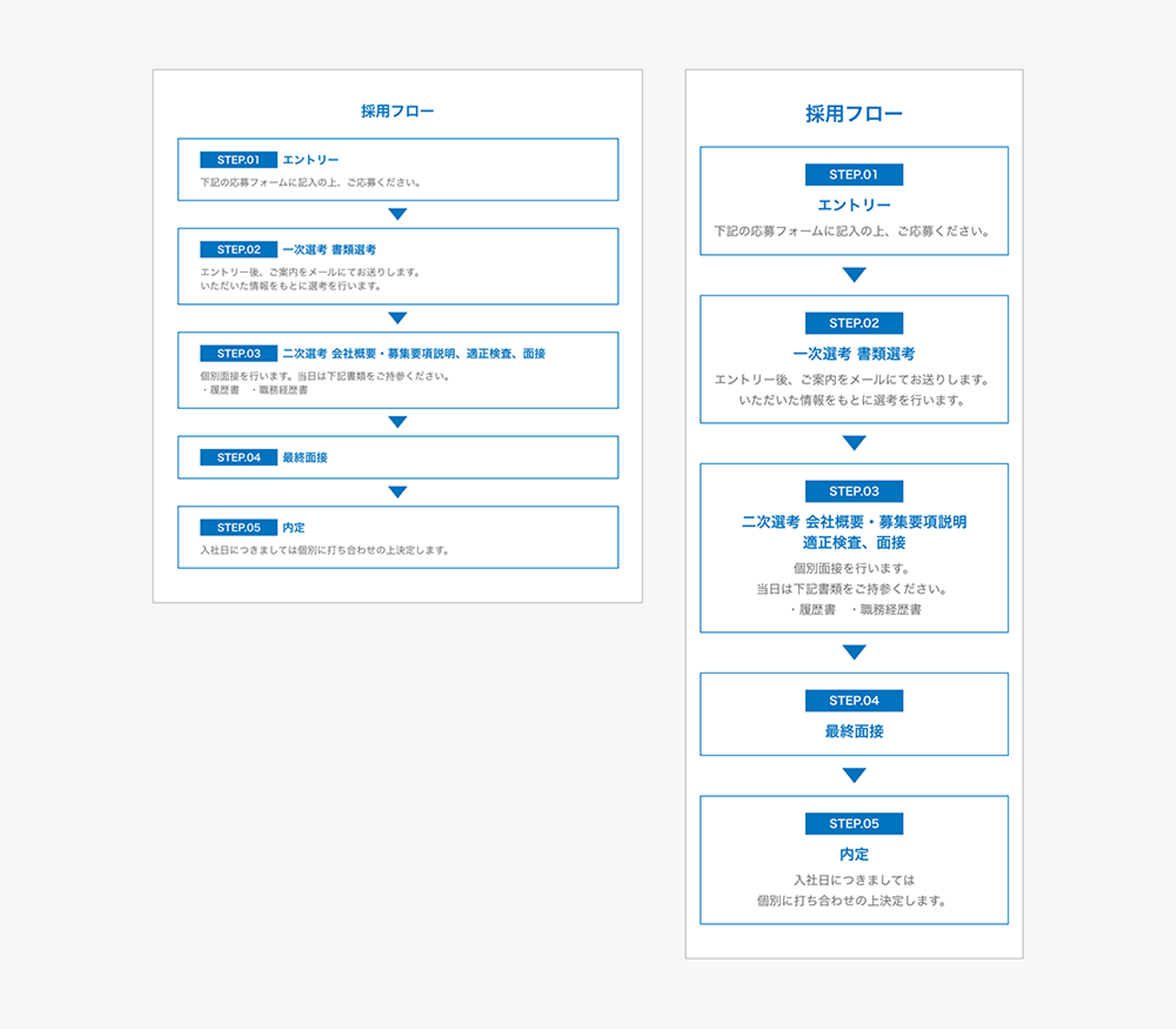 エントリーページなどに採用フローを掲載しているサイトが多く、