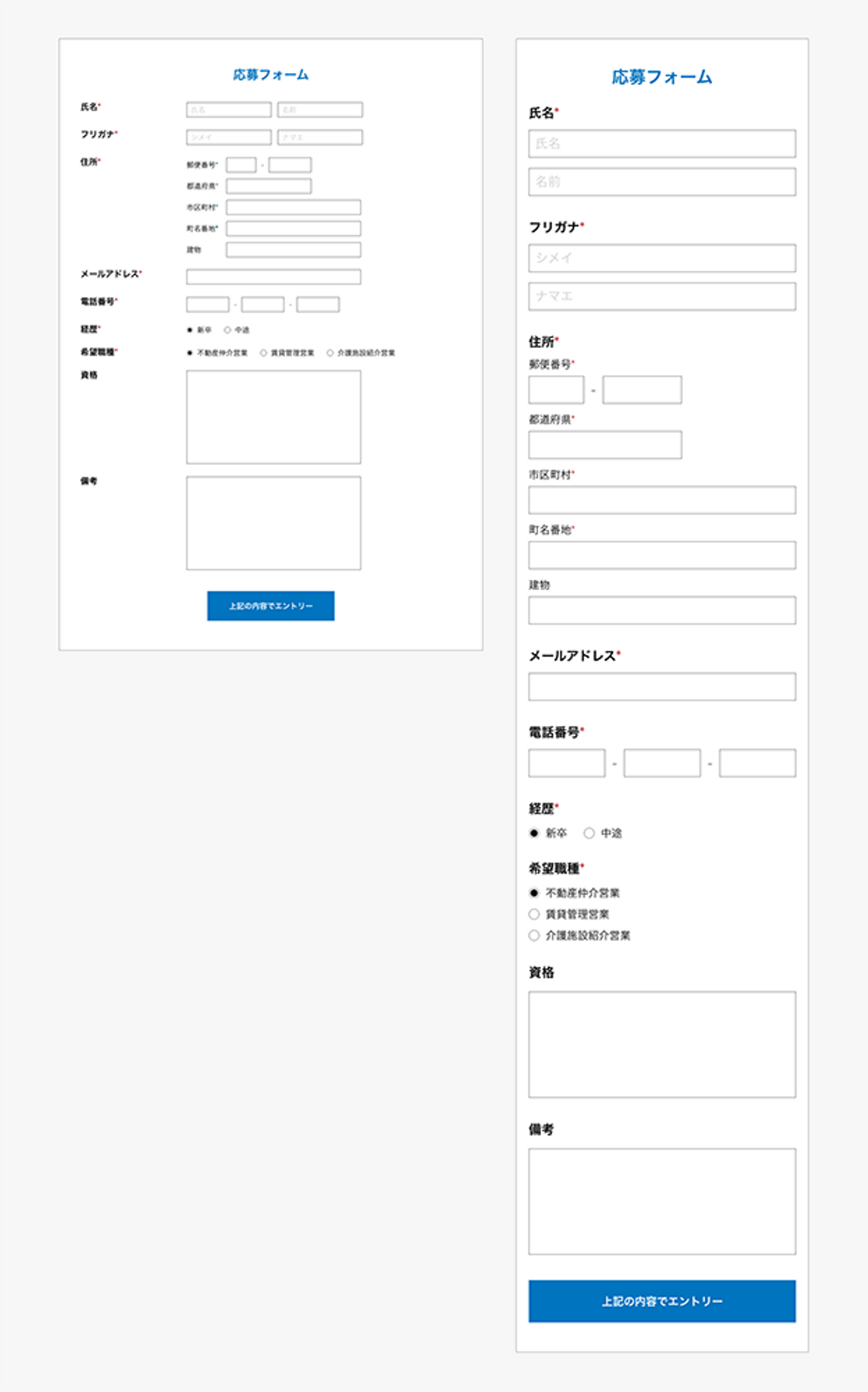 「募集要項と、応募フォームはエントリーページの1ページ内にまとめること」