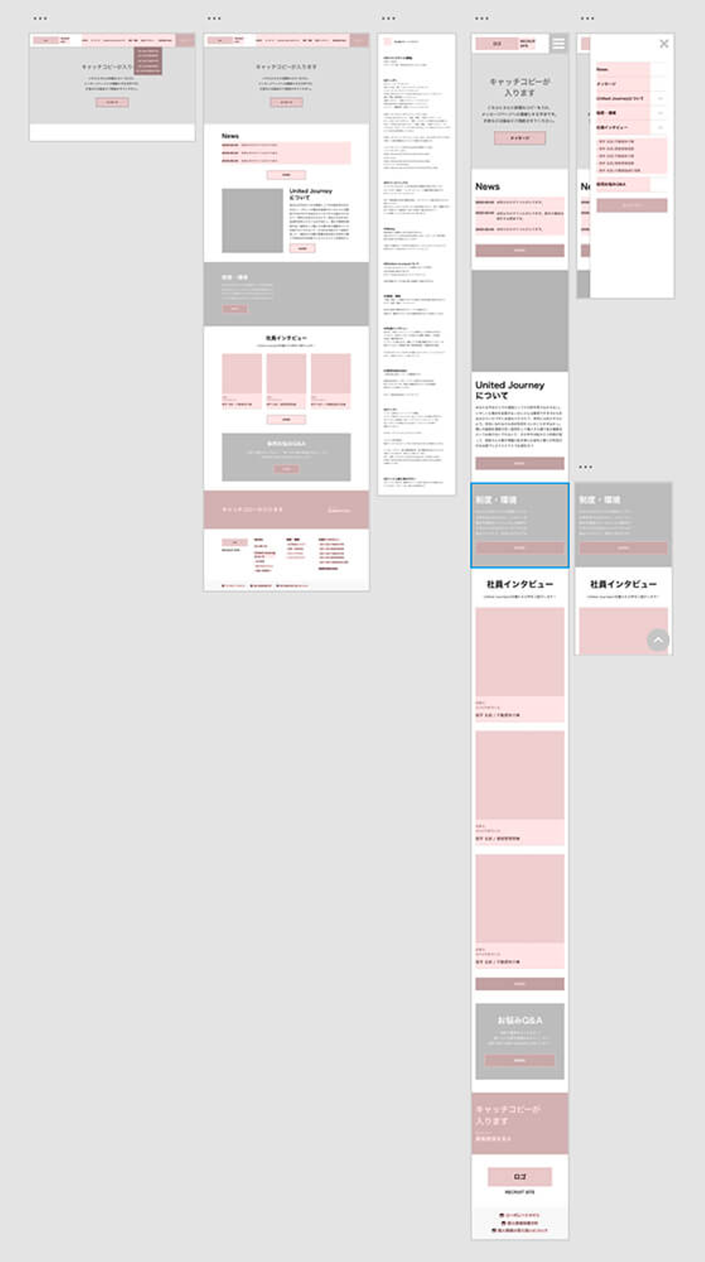 デザインを制作する前に、ワイヤーフレームを用いてコンテンツの