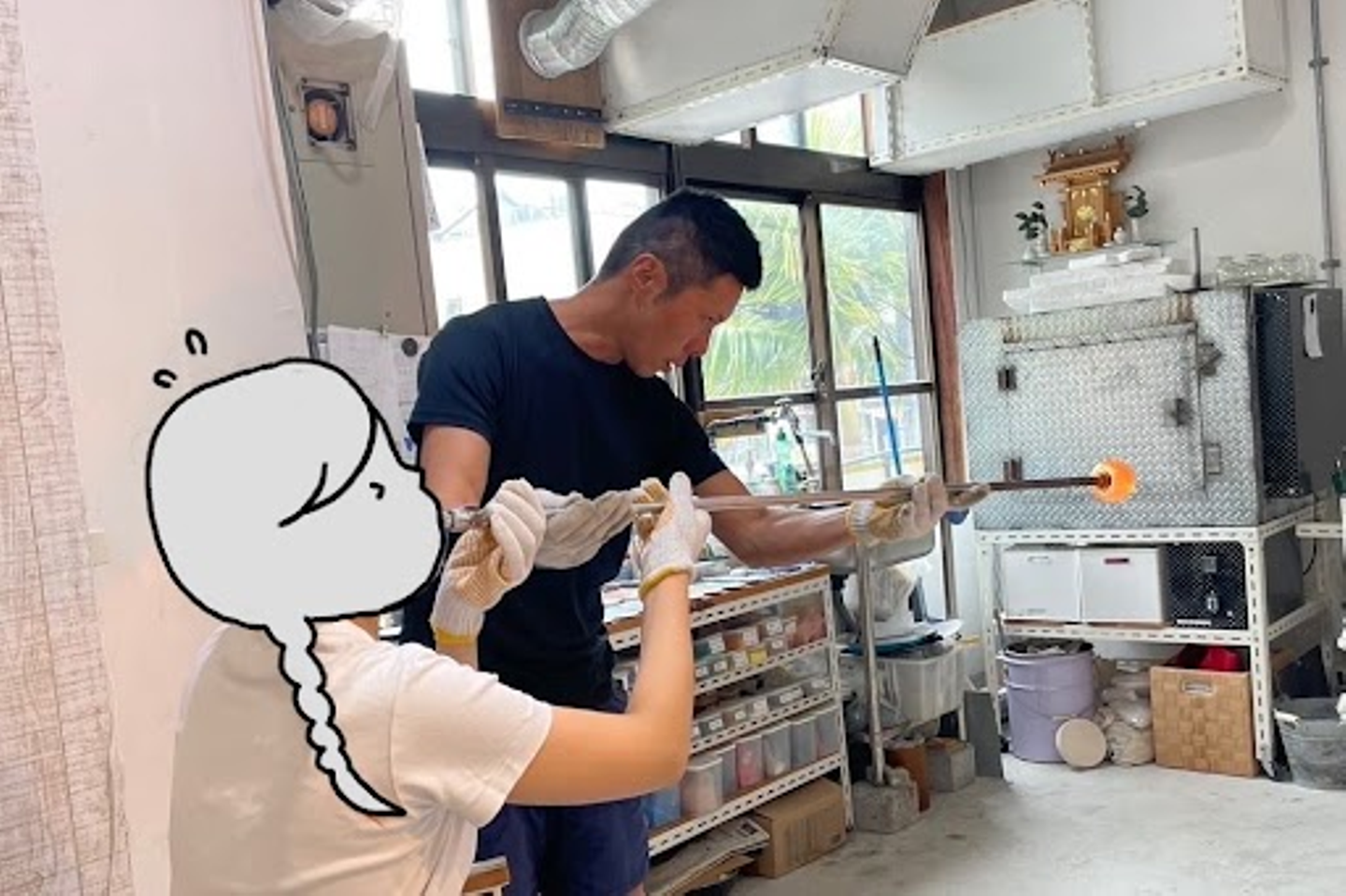 私は「ガラス体験」に挑戦! 初めての体験で息の強弱が難しかったですが、スタッフさんの補助もありかわいい作品が作れました。