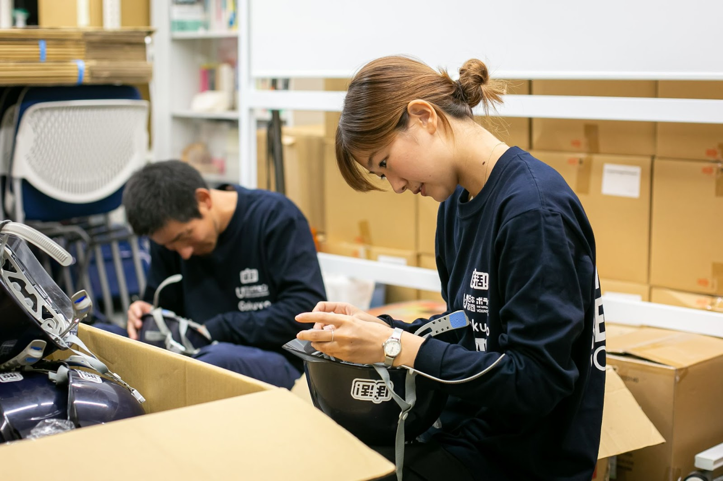 被災地の活動に行っていない時は、都内のボラセンオフィスで次回の災害ボランティア募集の準備をしたり、災害以外のボランティアに関する業務を行ったりしています。