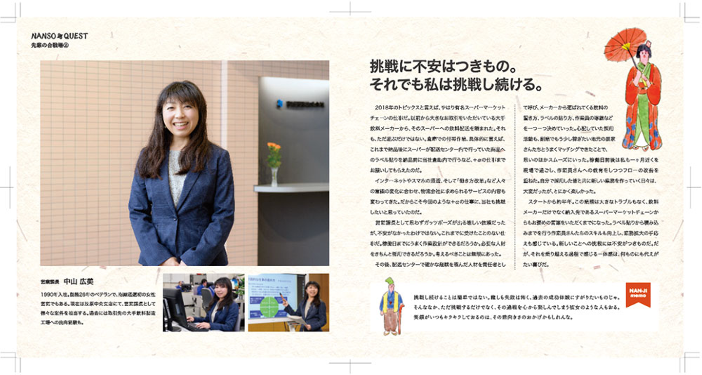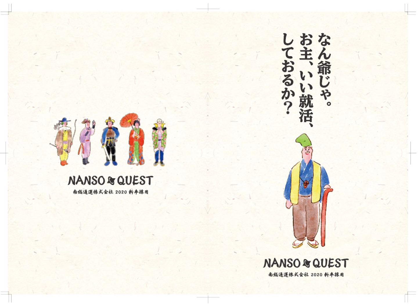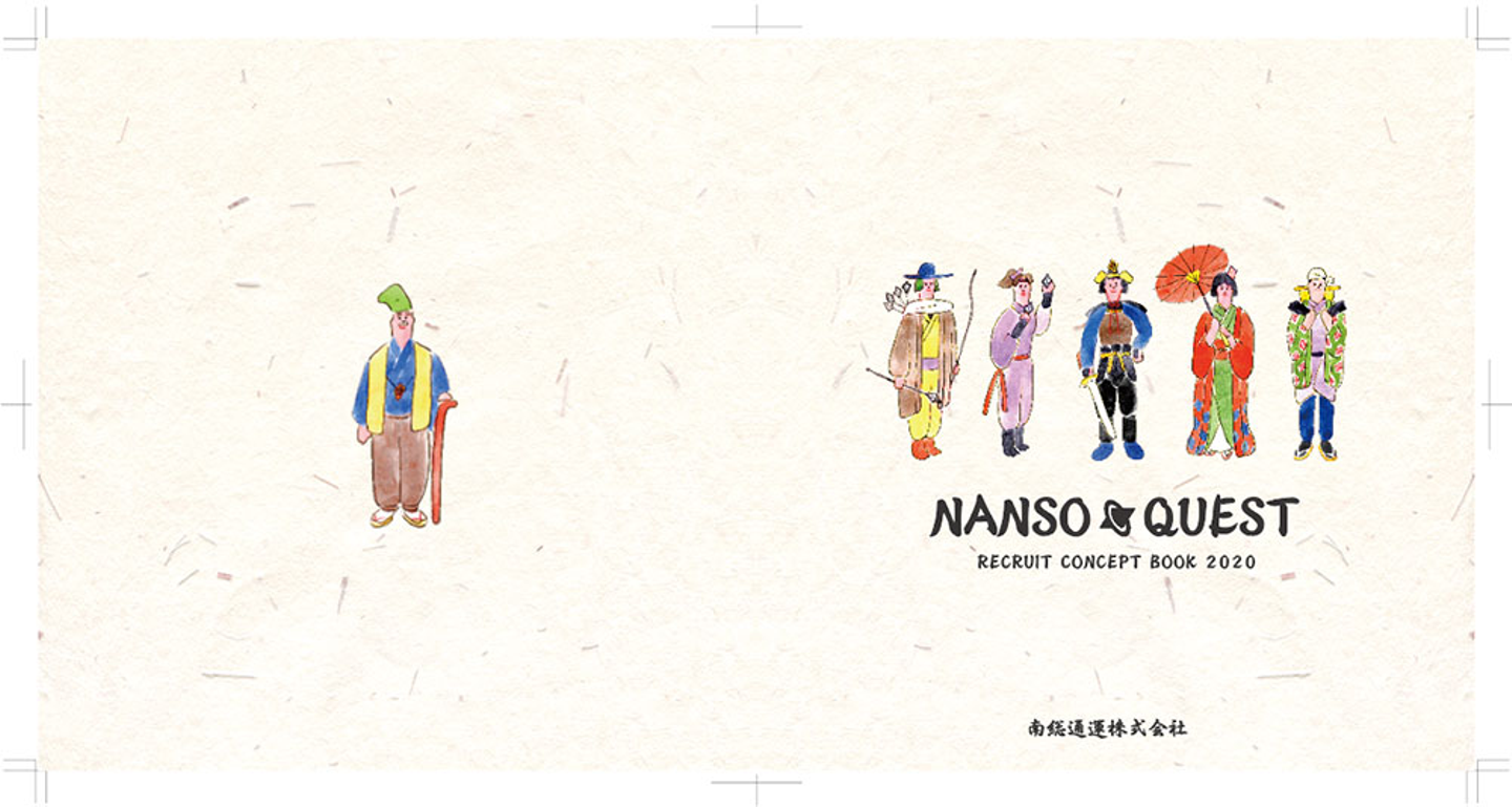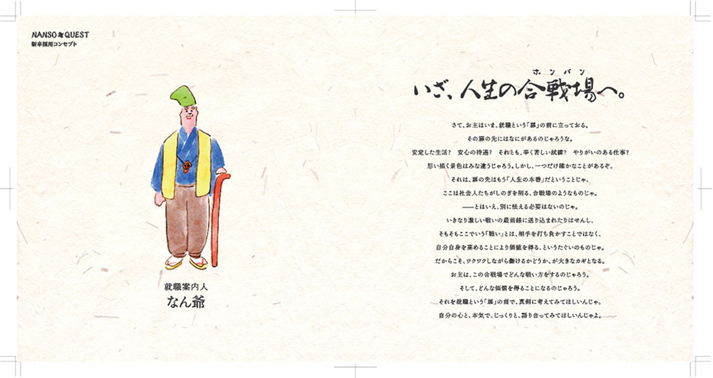 採用コンセプトの詳細を案内するコンセプトブック。なん爺が就職案内人となって、学生の皆さんに言葉を投げかけます。