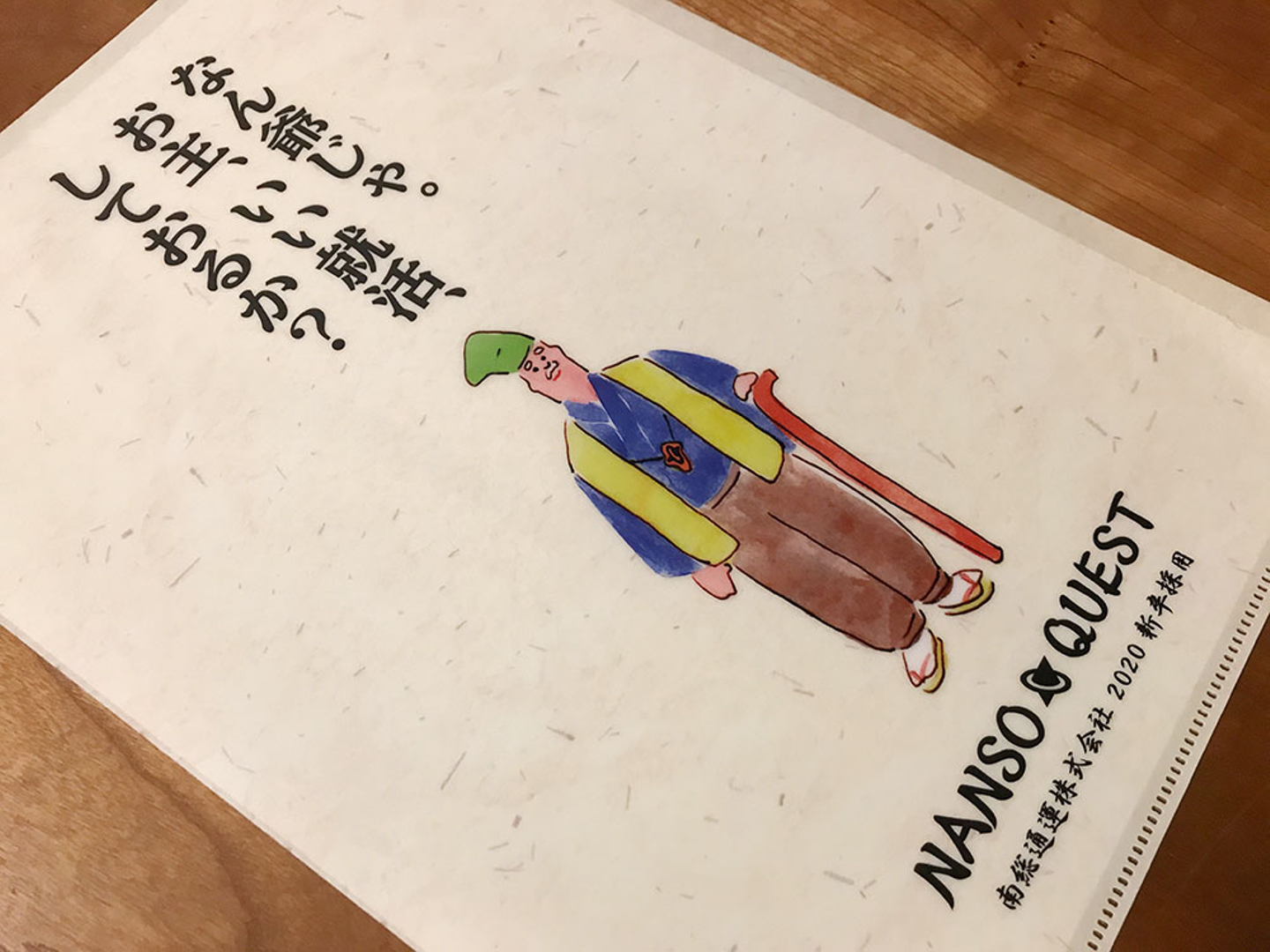 なん爺を大胆に配置したクリアファイル。ノベルティとしては定番のアイテムですが、デザインが個性的なので目立ちますね。キャッチコピーを入れてさらにメッセージ性を高めました。