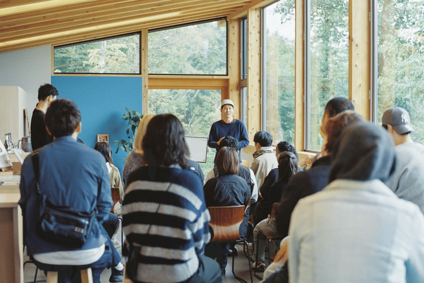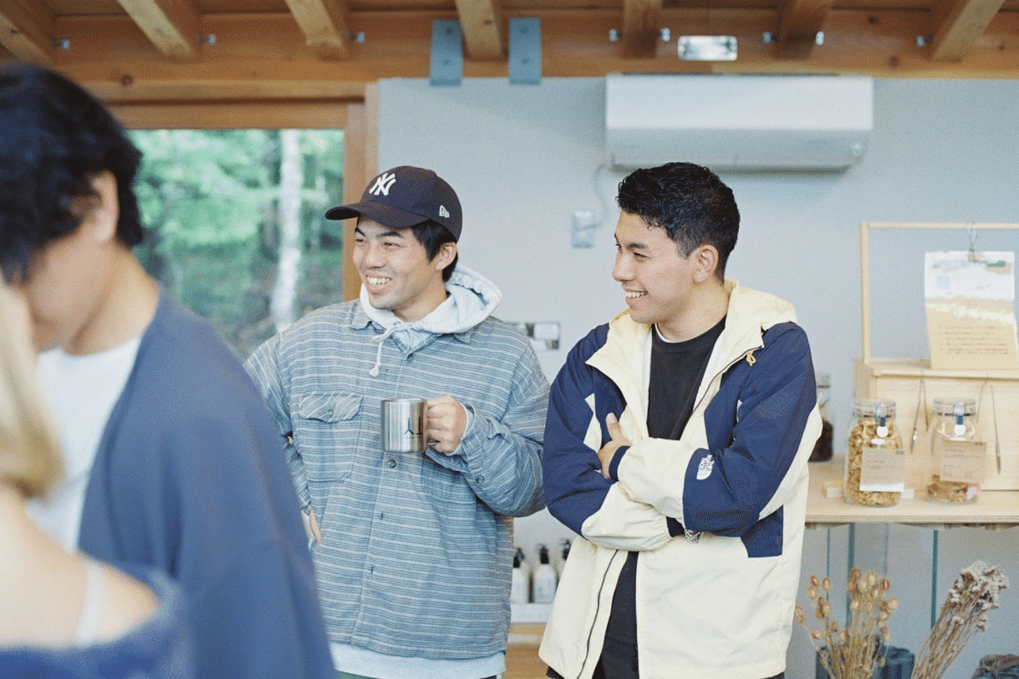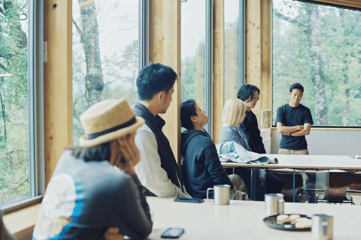 2日目は山中湖の自然の中にある、カフェと量り売りのお店「山中TERRACE」へ行き、代表の盛田さんからお話を聞きました。「自分が楽しいと思える場を通じて、結果的に自然環境と地域環境に対してサスティナブルに場をつくりたい」という思いに、深く共感。今後は衣食住全般を扱っていき、カフェのみでなくキャンプサイトの話やコワーキングスペースまで展開していくとのことでした。