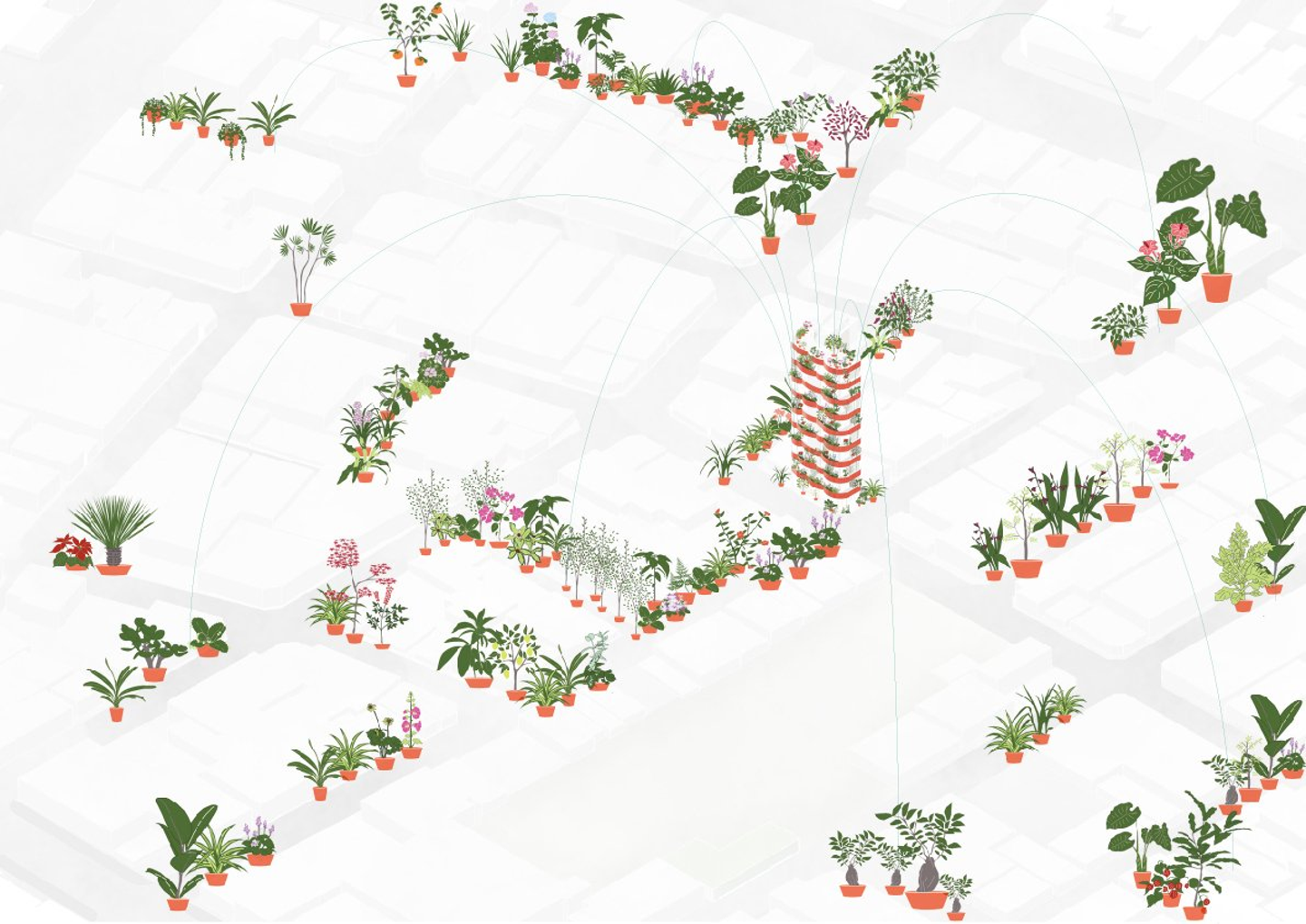 都会だからこそプランターで育てる必要があり、プランターだと成長の限界があり株分けという行為につながり、その株分けによって近隣同士の交流につながっていたのです。、路地裏園芸は単なる都会にあるオアシス的な緑という事ではなく、まちのコミュニケーションツールになりながら暮らしにそれが浸透している、このまちにとってのインフラなのだろうとわかった時に、より一層この考え方がSOIL Nihonbashiにもぴったり合っているような気がしたのです。