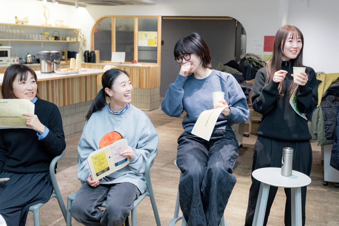 総会後の新年会「Cooperative Party」では、Soil workの会員の方々とも交流し、多様な視点が交わる場となりました。仕事のベールが一枚二枚自然と剥がれるような、緩やかな時間をコミュニティマネージャーのみんなが作ってくれました。